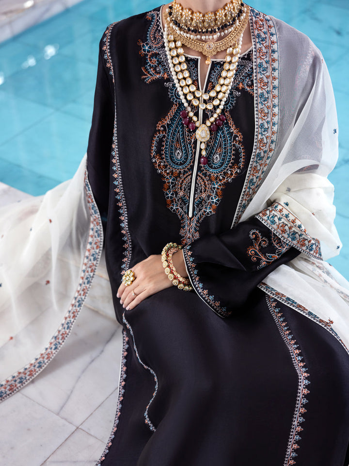 Black Sheesha Silk Formal 3 Piece Stitched