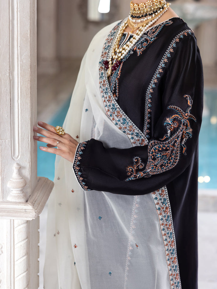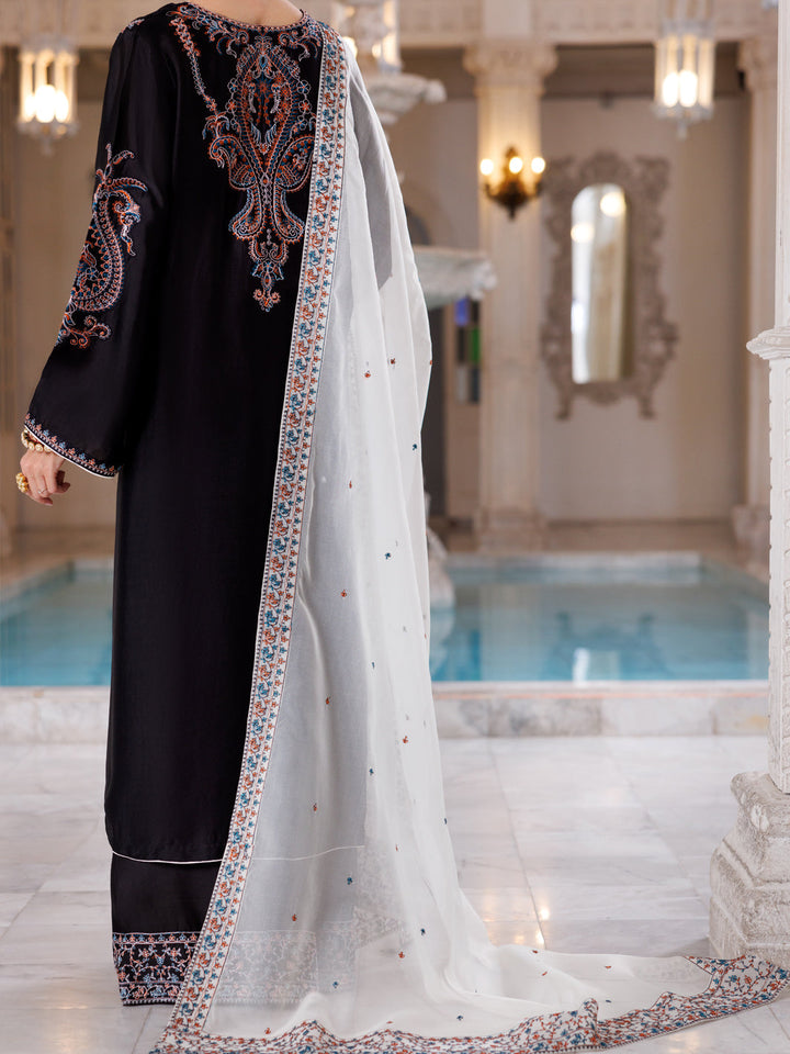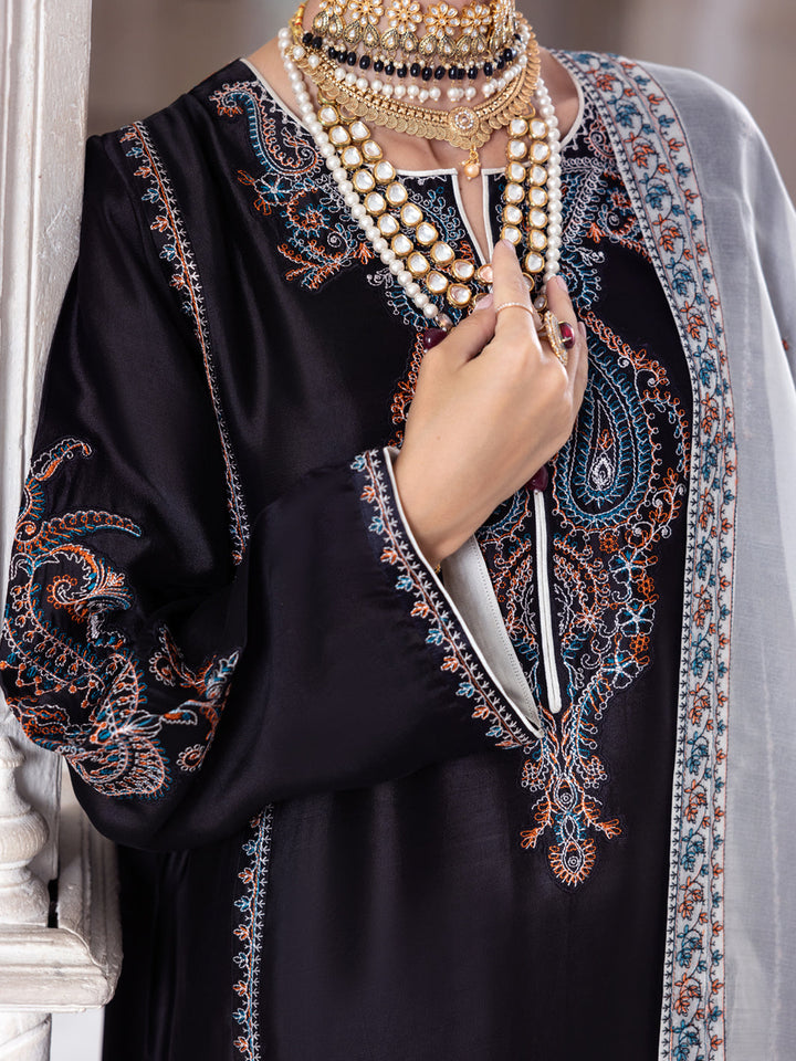 Black Sheesha Silk Formal 3Pc Stitched - AL-3PS-LS-458