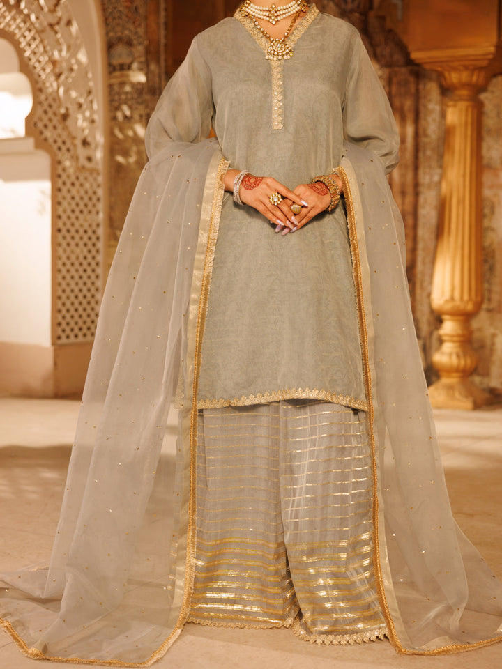 Grey Lurex Organza Formal 3Pc Stitched - AL-3PS-LS-531
