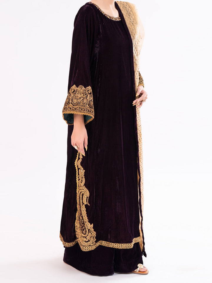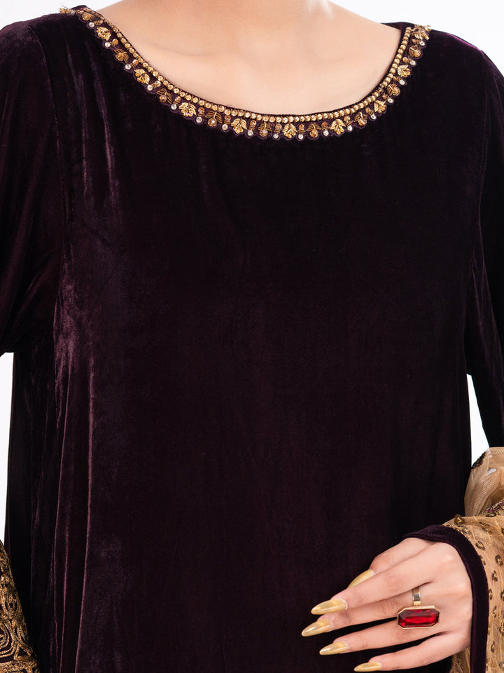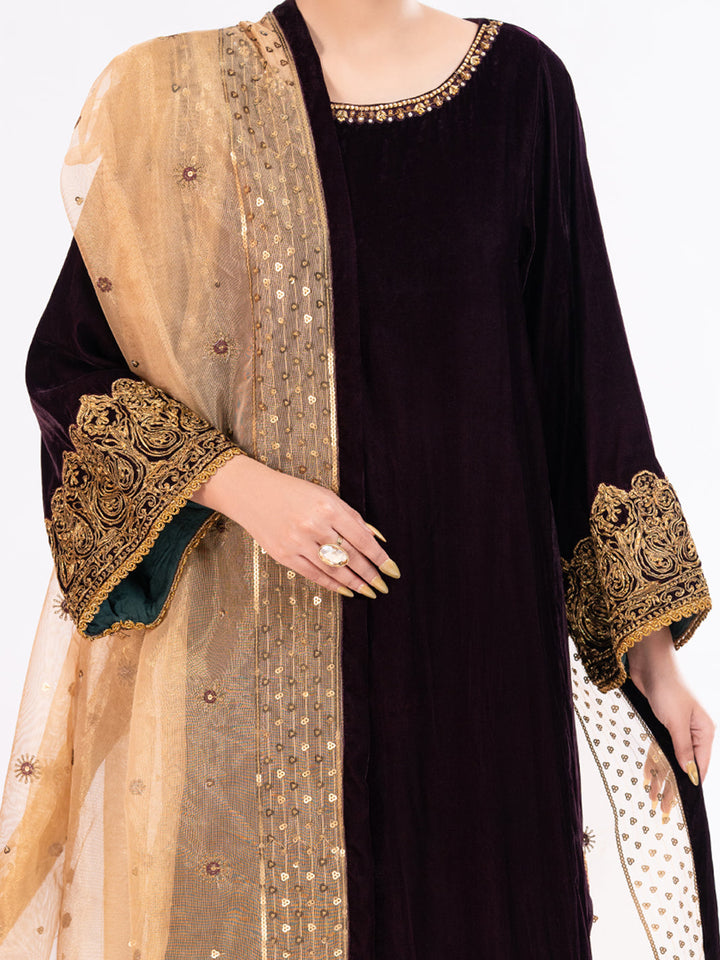 Maroon Velvet Formal 3Pc Stitched - AL-3PS-LS-560