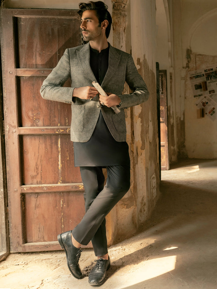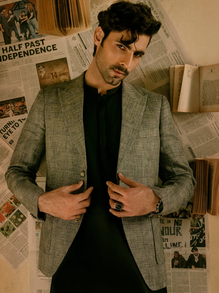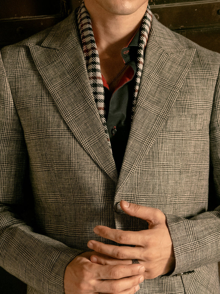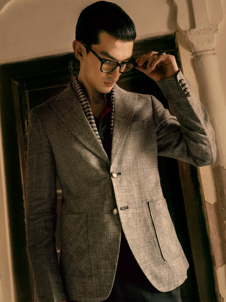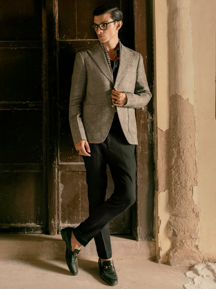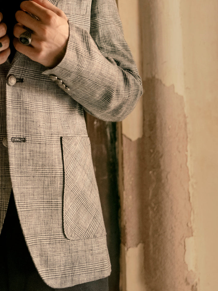 Textured Fabric Blazer With Small Details And Lapelled Collar