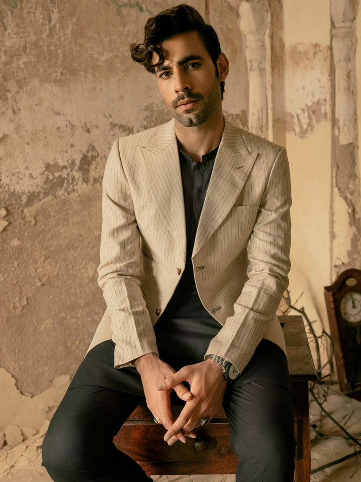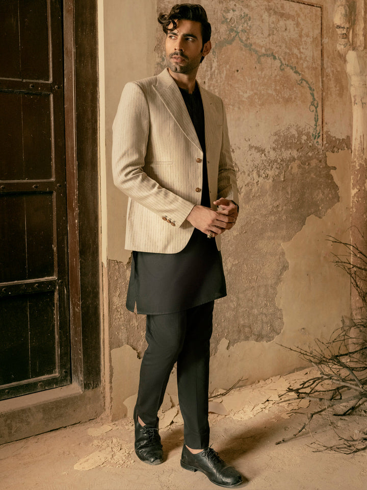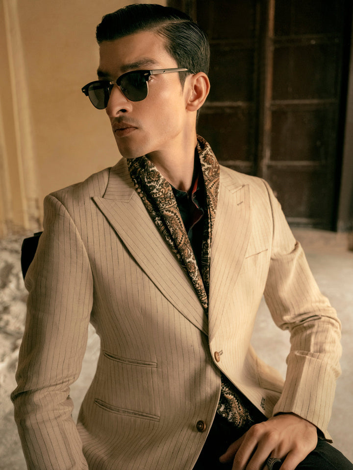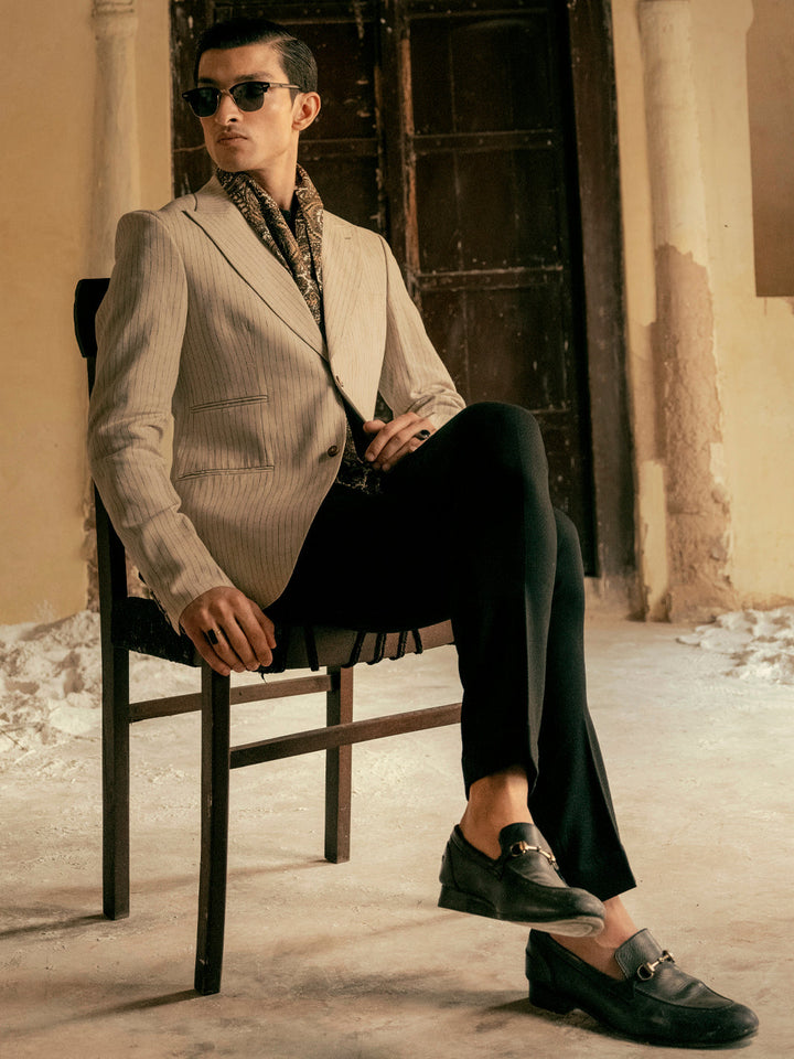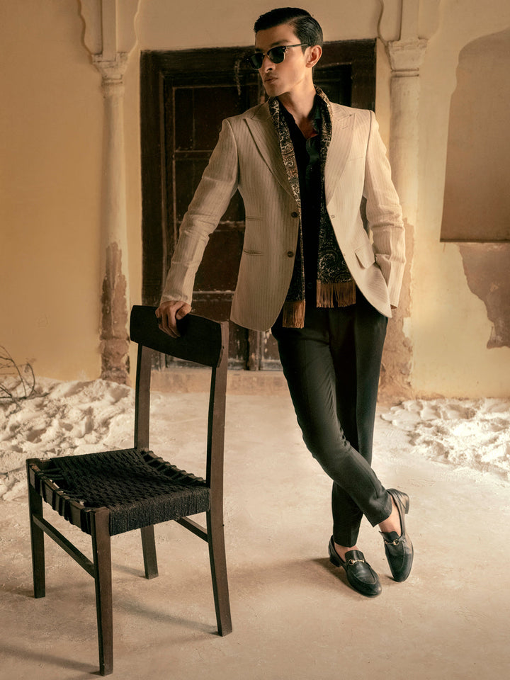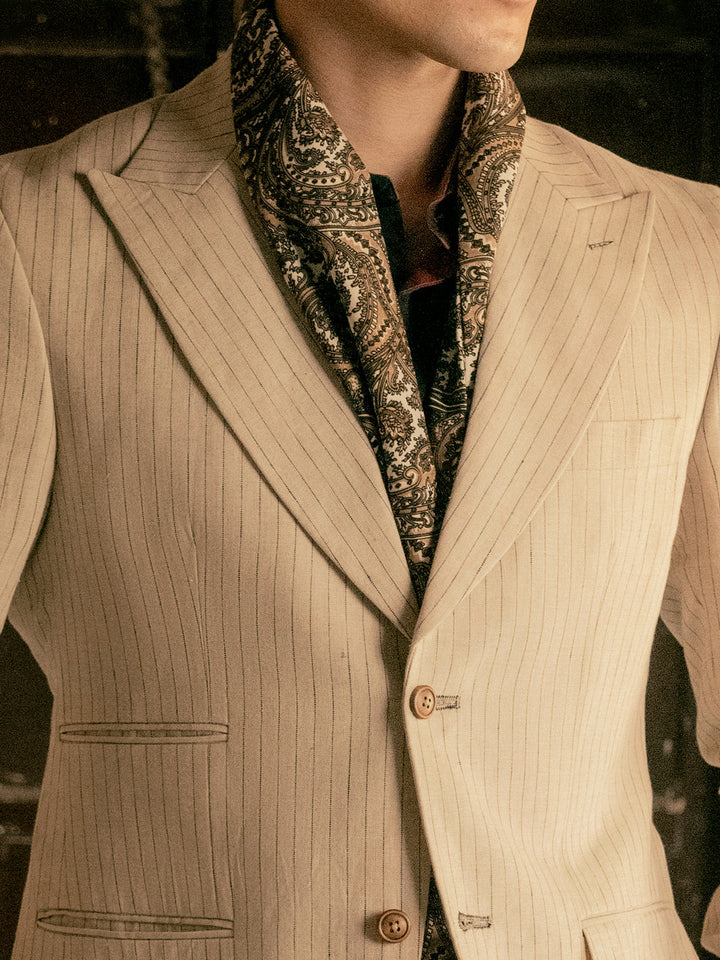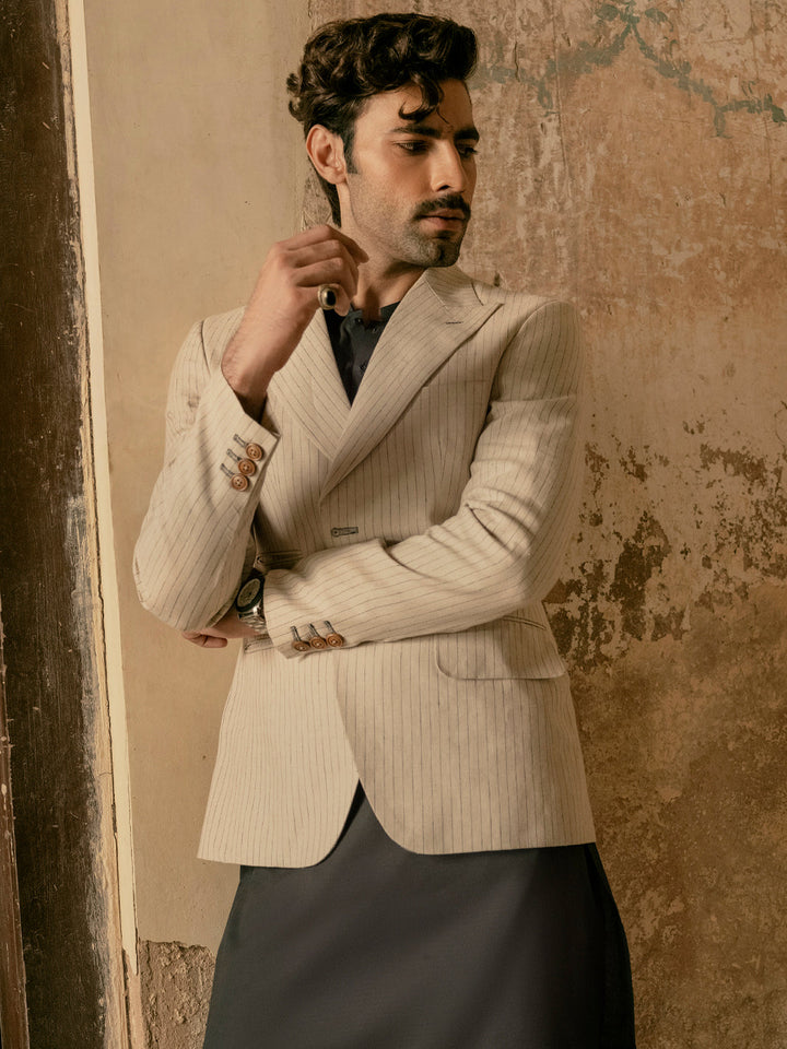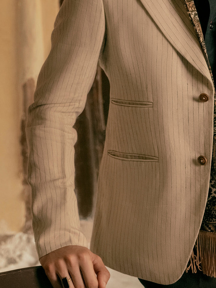 Rounded Lapelled Collar And Patch Pockets On Linen Fabric Blazer