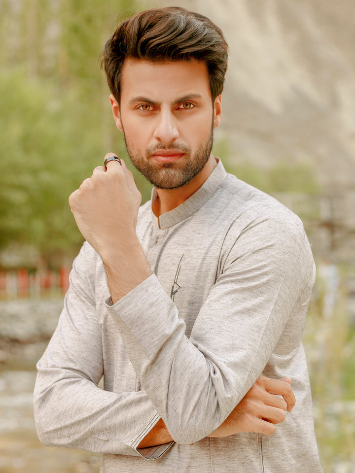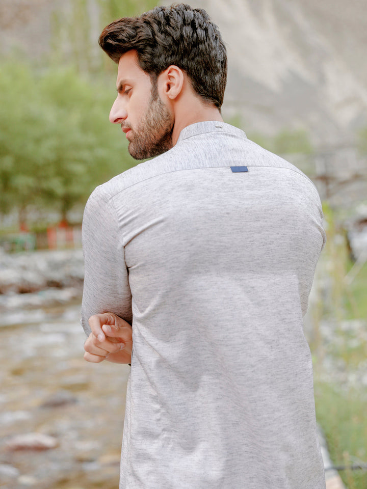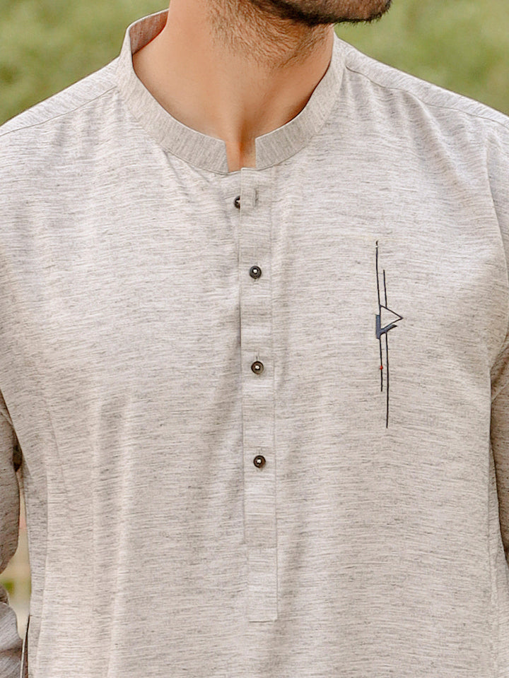 Grey Kurta With Embroidery Detail On Front Panel And Right Sleeve