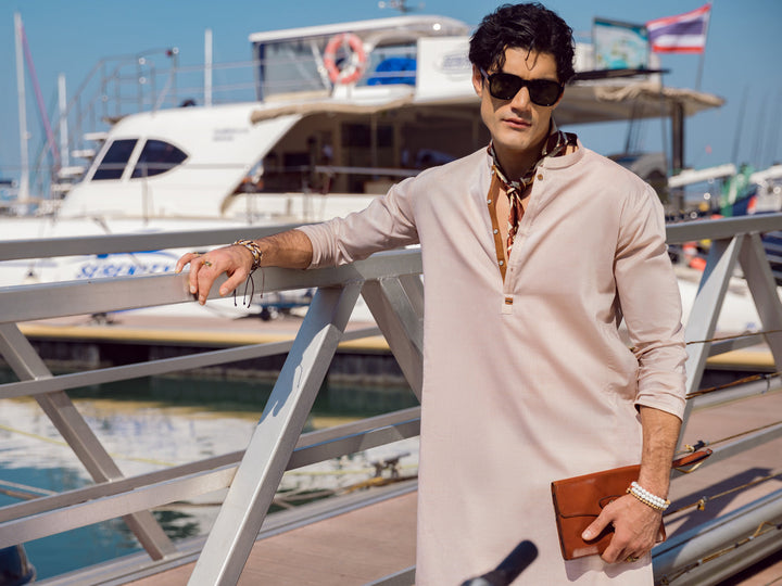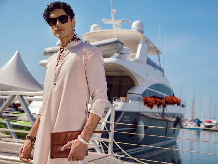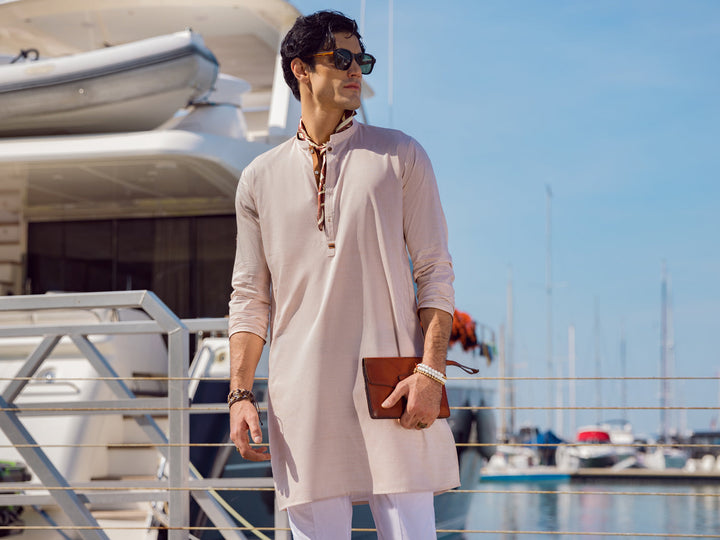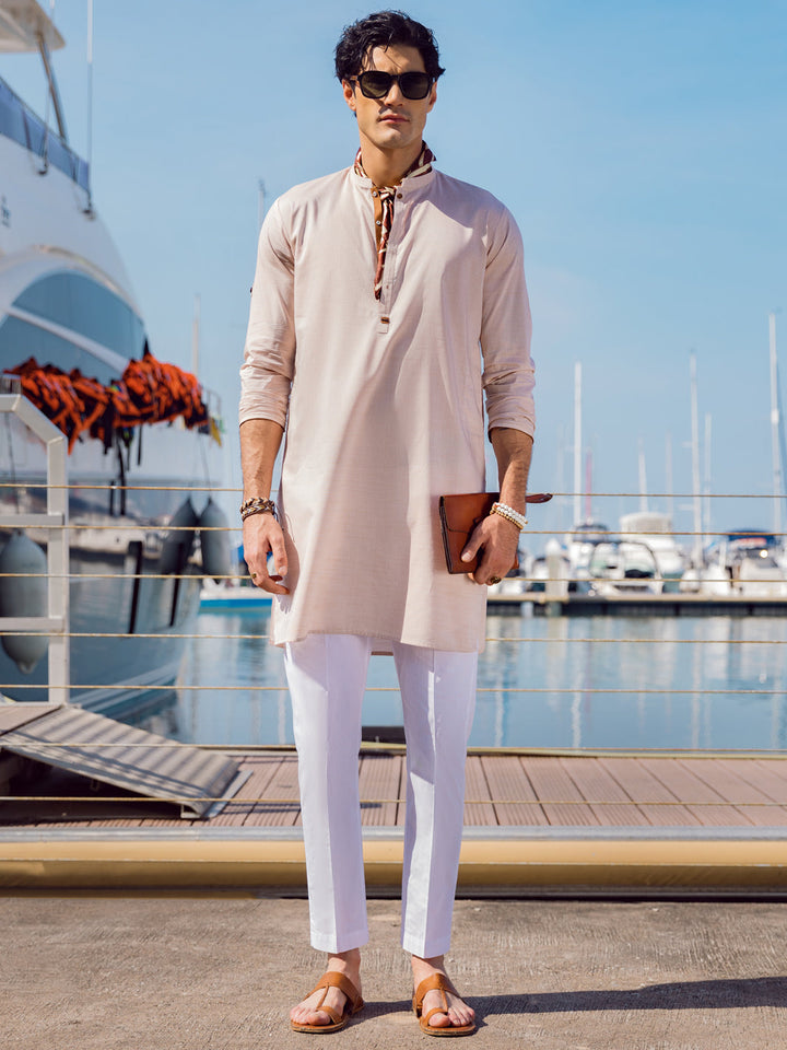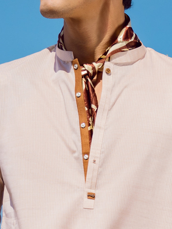 Cut And Sew Kurta With Patch And Accented Invisible Placket