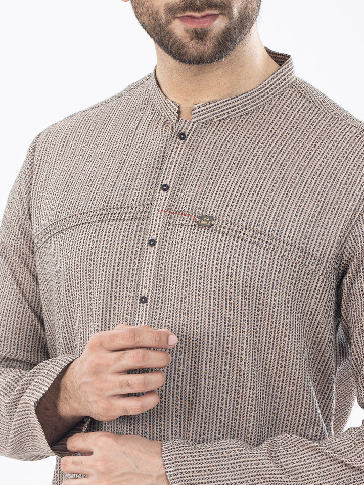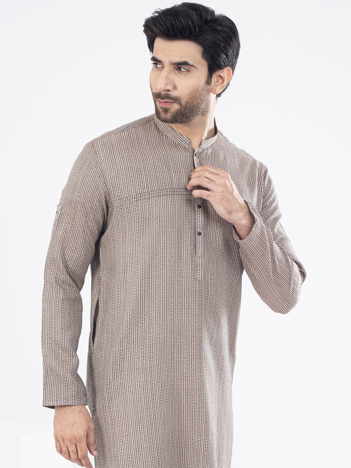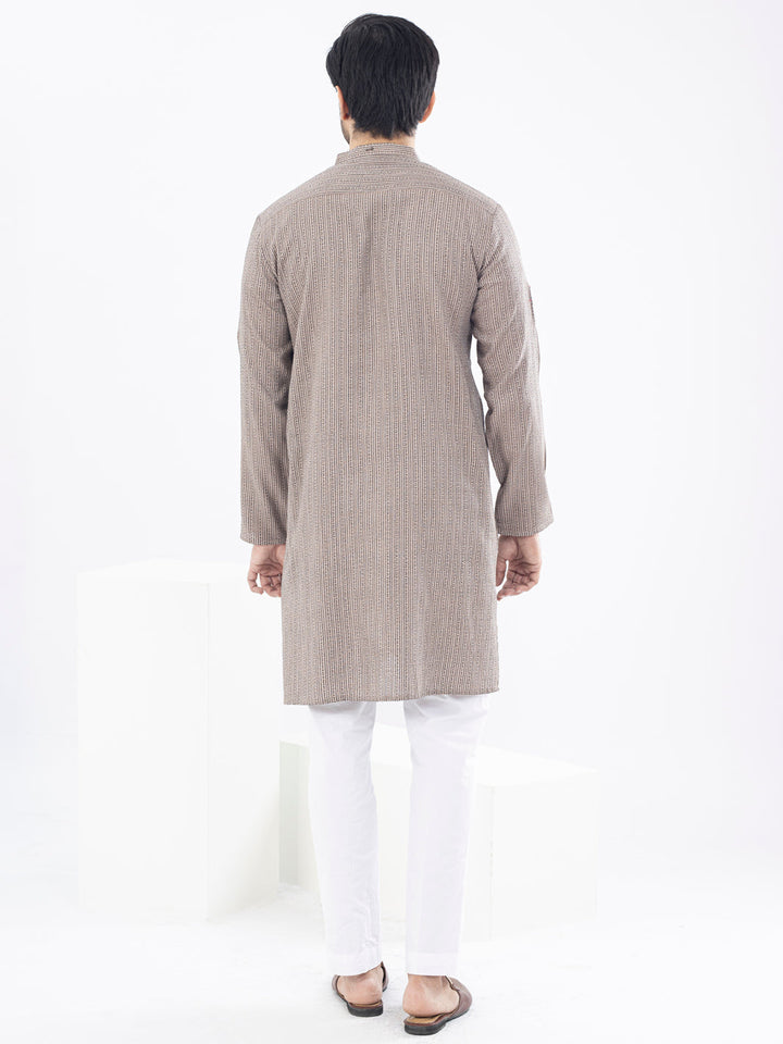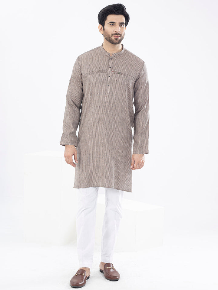 Self-Designed Woven Fabric Kurta With Stitch Details and Metallic Buttons
