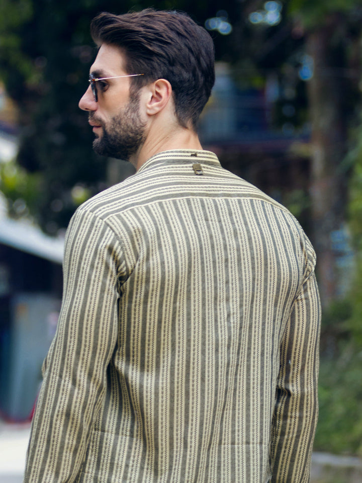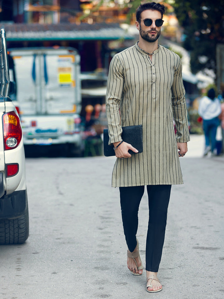 Woven Designed Fabric Kurta With Wooden Buttons and Minimal Details