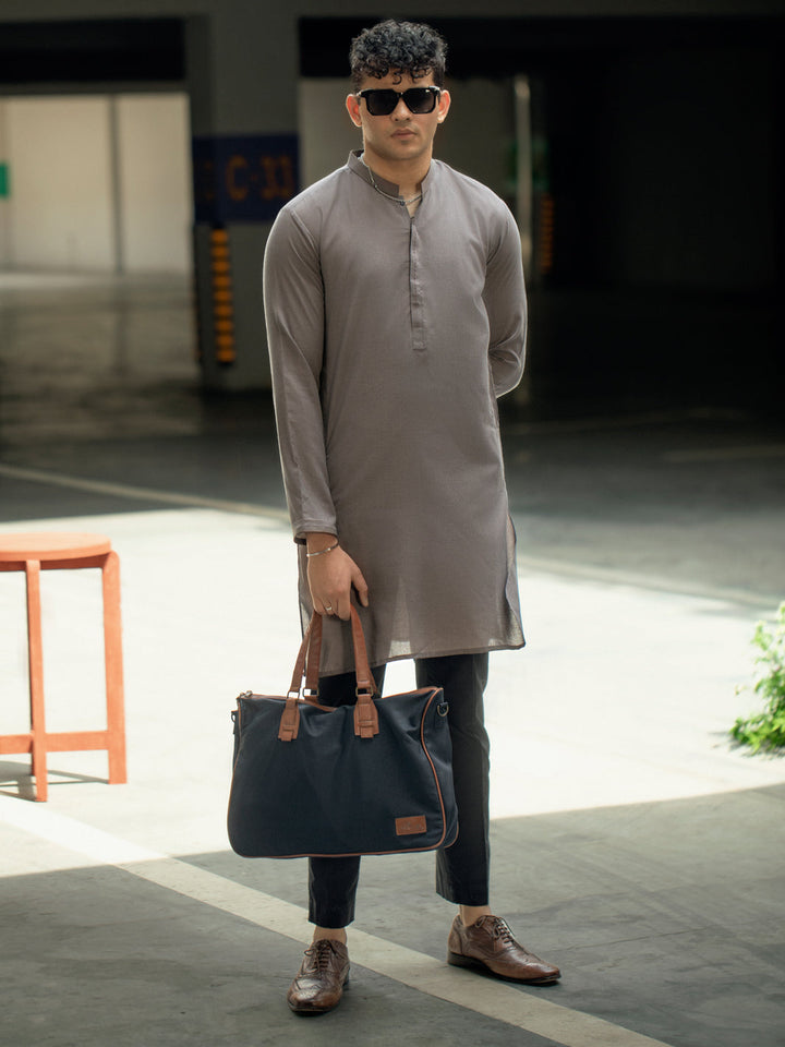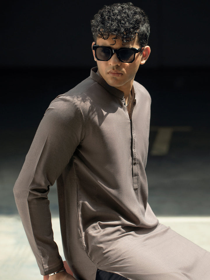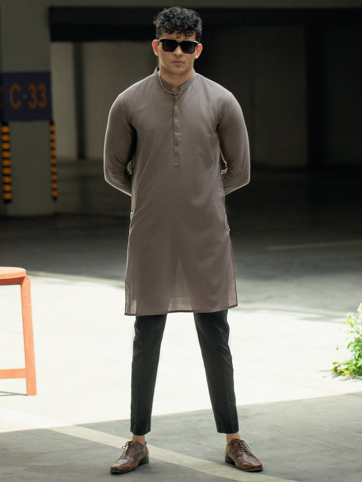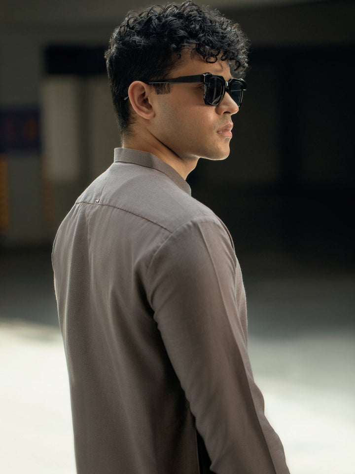 Brown Kurta With Key and Stitch Detail on Placket
