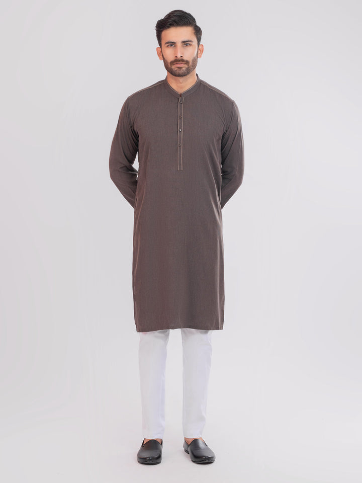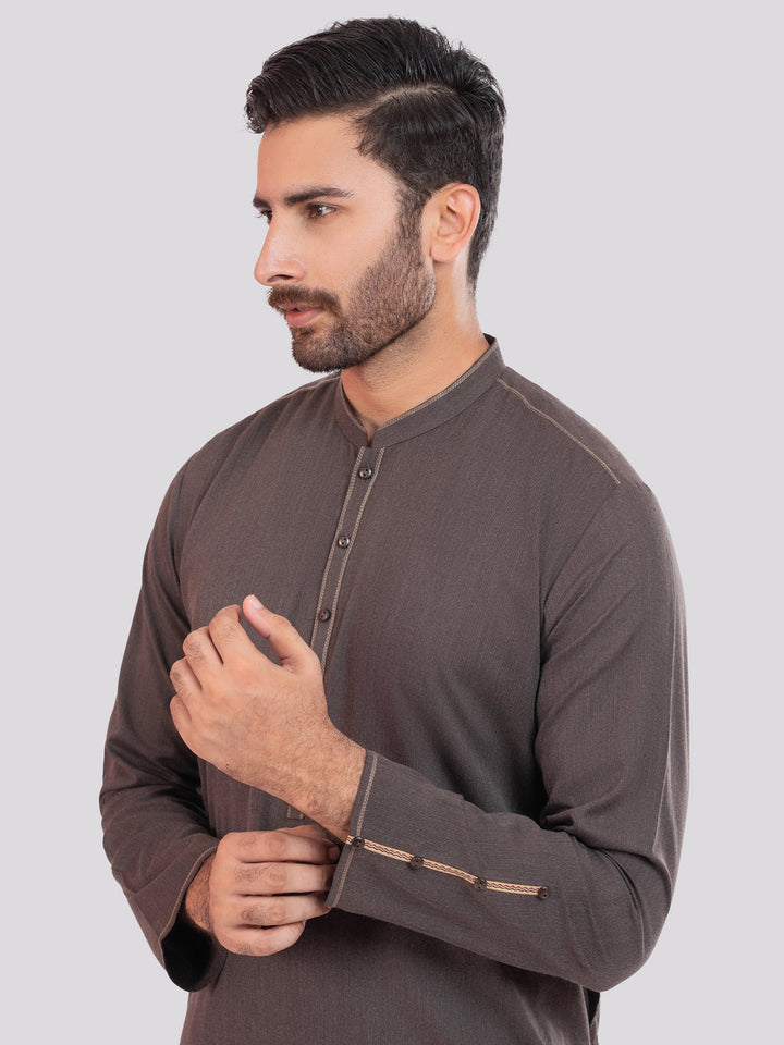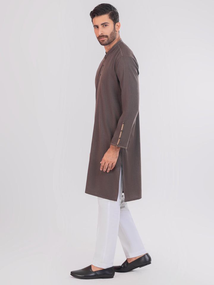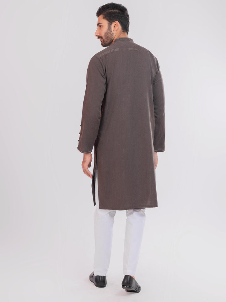 Smart Fit Kurta With Contrast Stitch Details and Wooden Buttons