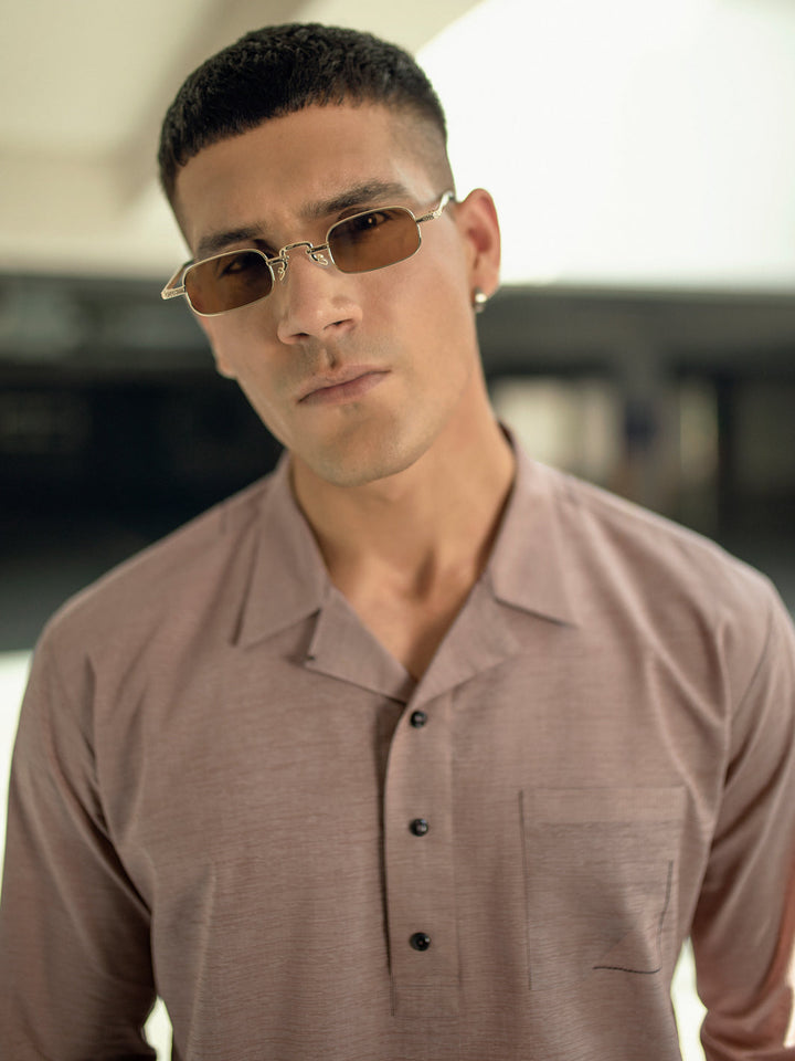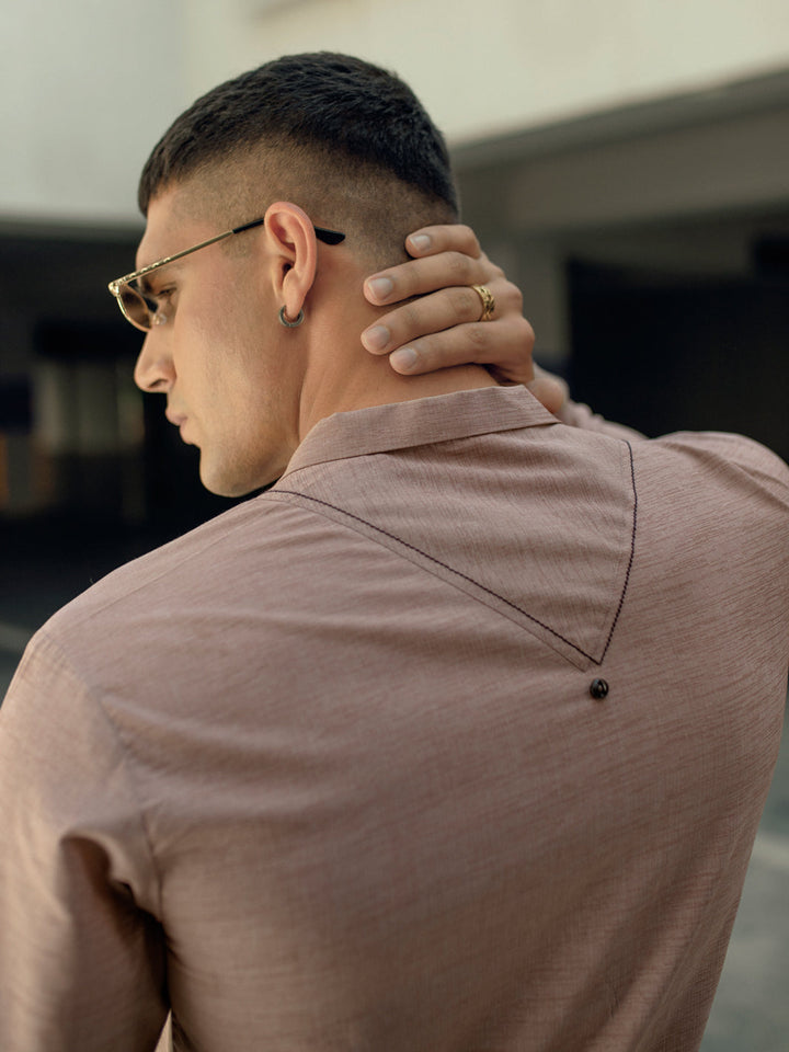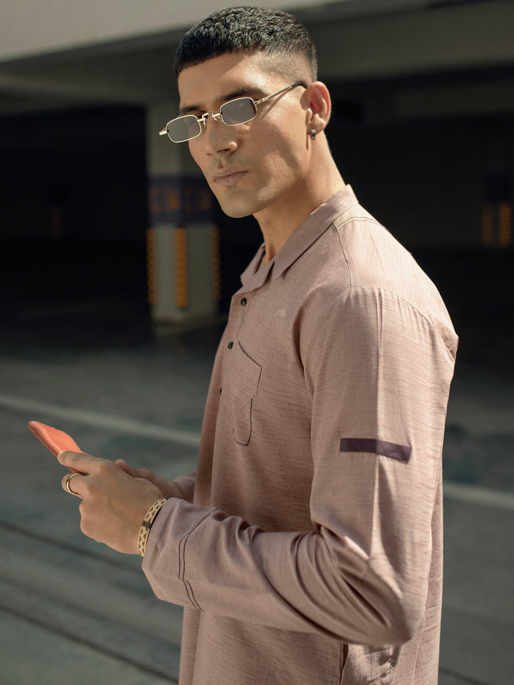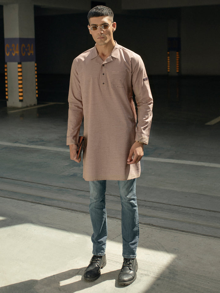 Modern Fit Kurta With Front Pocket, Open Front Collar Wide Button Placket With Wooden Buttons