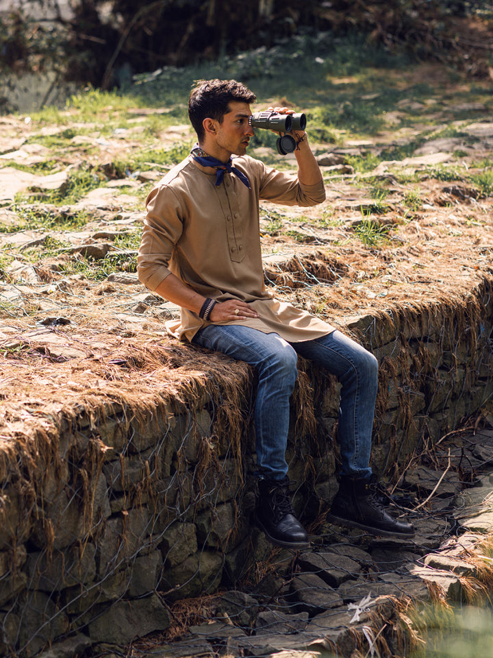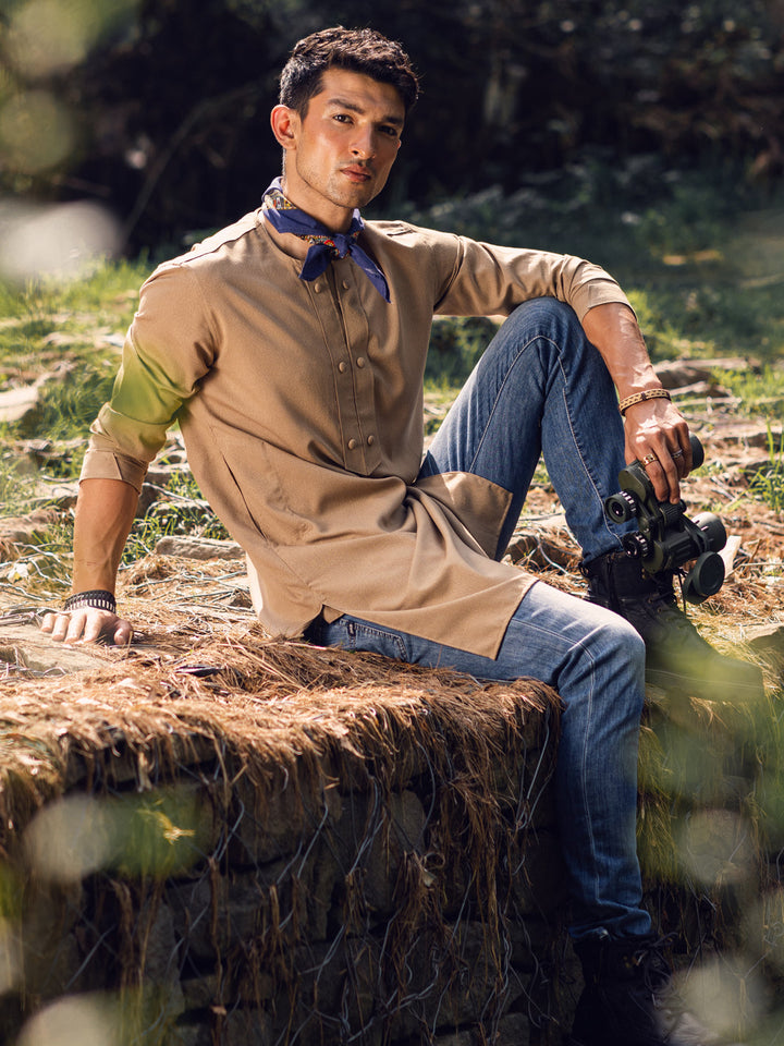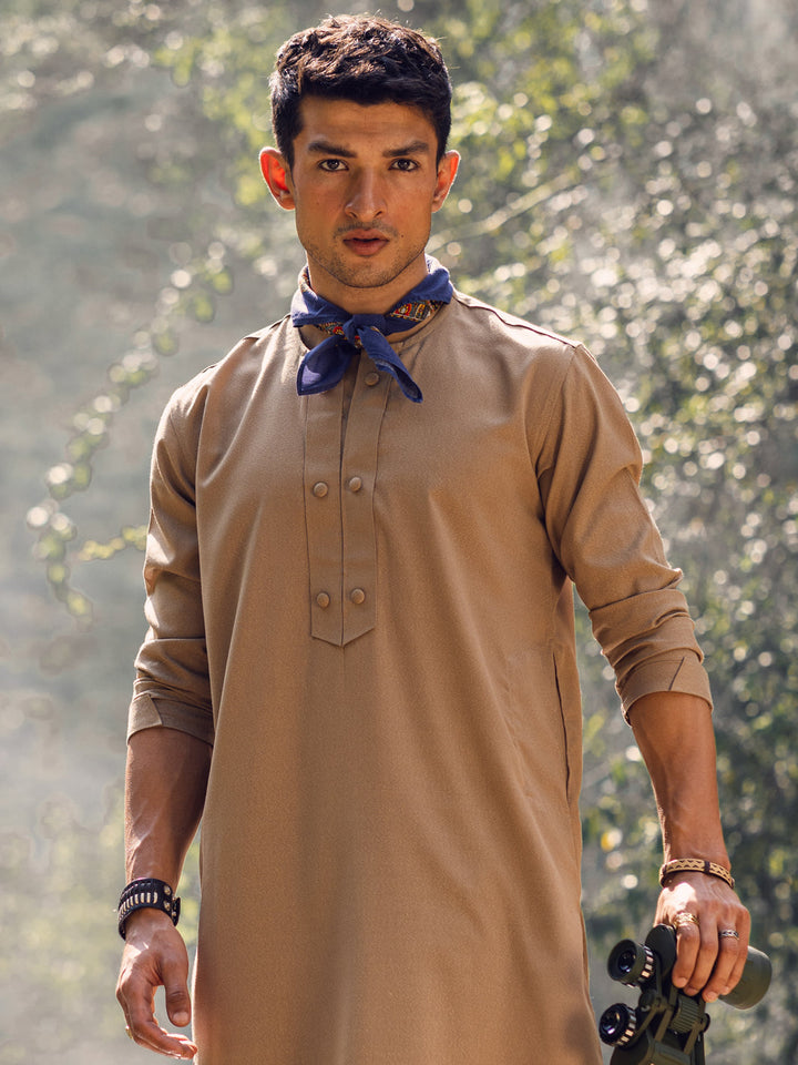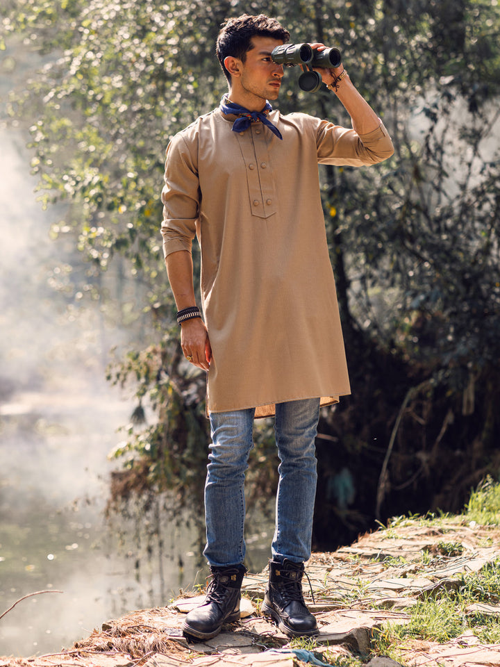 Modern Fit Kurta Detailed With Double Placket And Fabric Buttons
