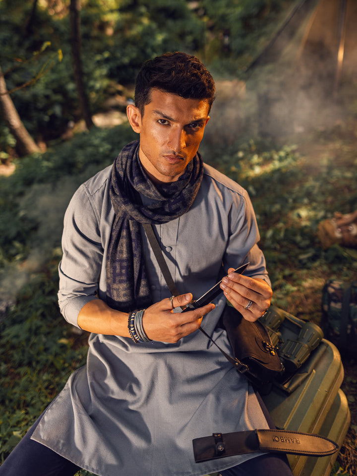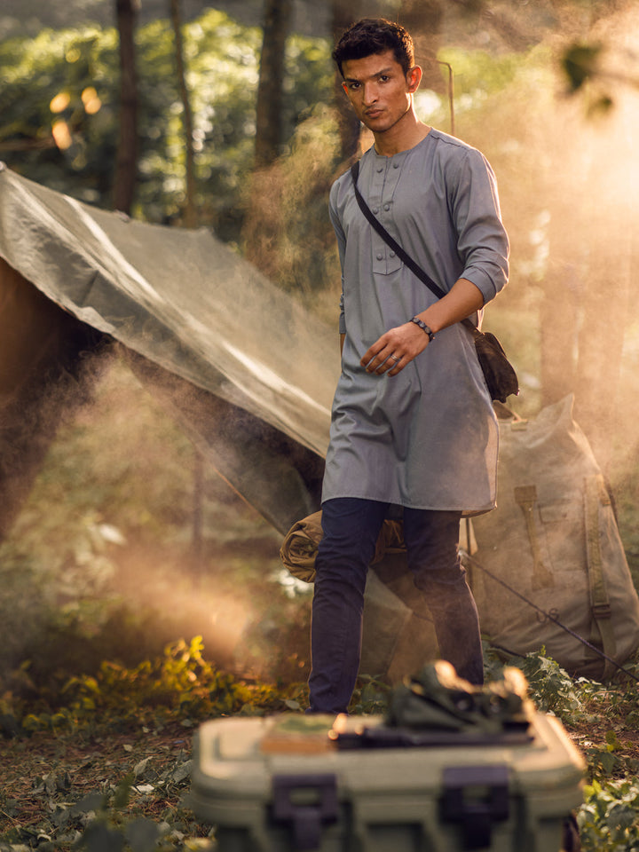 Modern Fit Kurta Detailed With Double Placket And Fabric Buttons