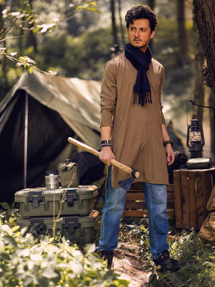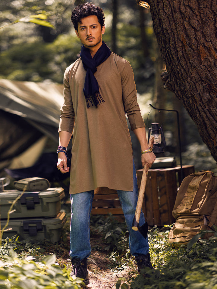 Modern Fit Kurta Detailed With Double Placket And Fabric Buttons