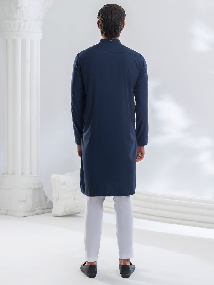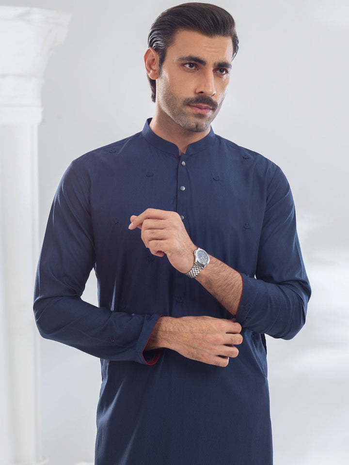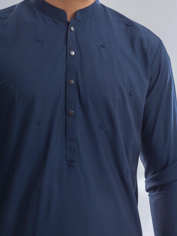 Navy Blue Semi Formal Kurta With Sophisticated Embroidered Motifs all Over.
