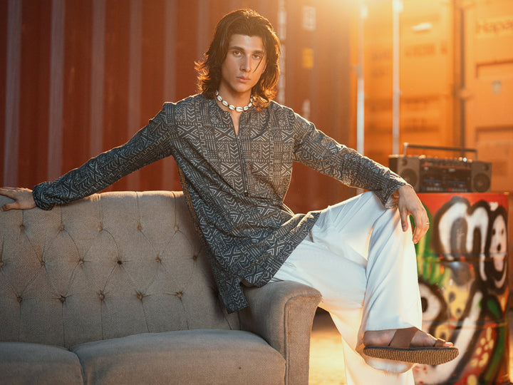 Digital Printed Kurta Complemented By a Zipper Detail on the Placket and a Refined Cut-And-Sew Design.