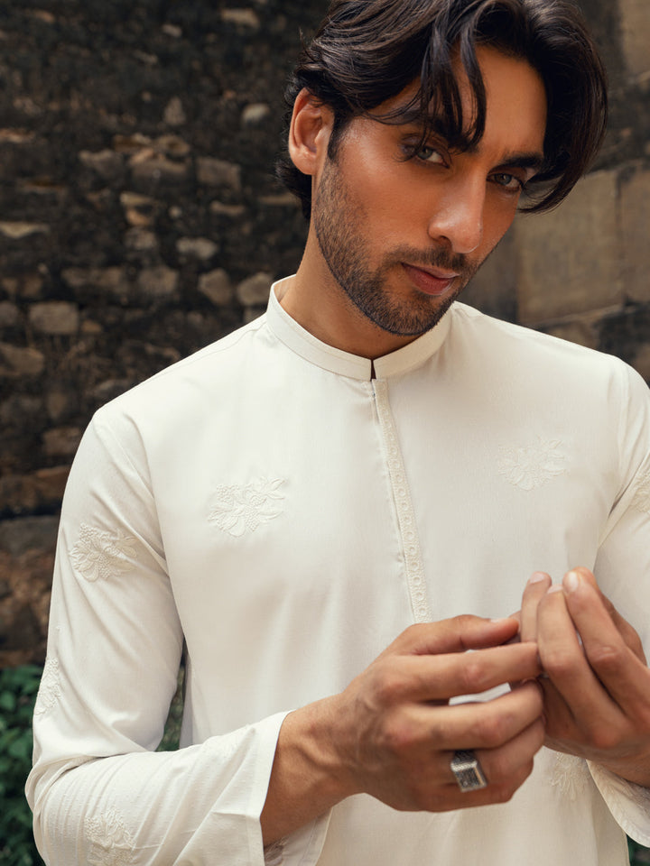 Semi-Formal Kurta Is Adorned With Refined Embroidery Along the Placket and Front Panel.