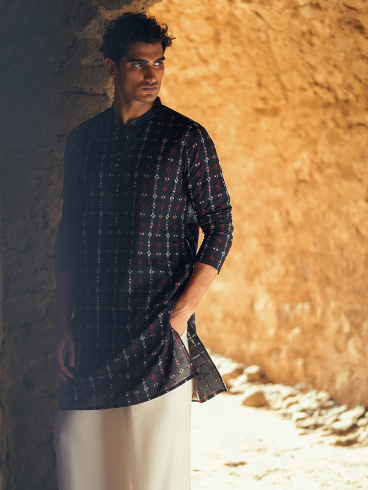 Black Cotton Semi-Formal Kurta - AL-K-1289