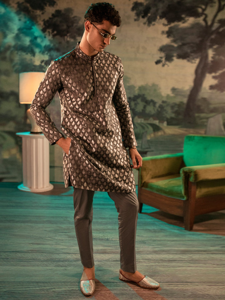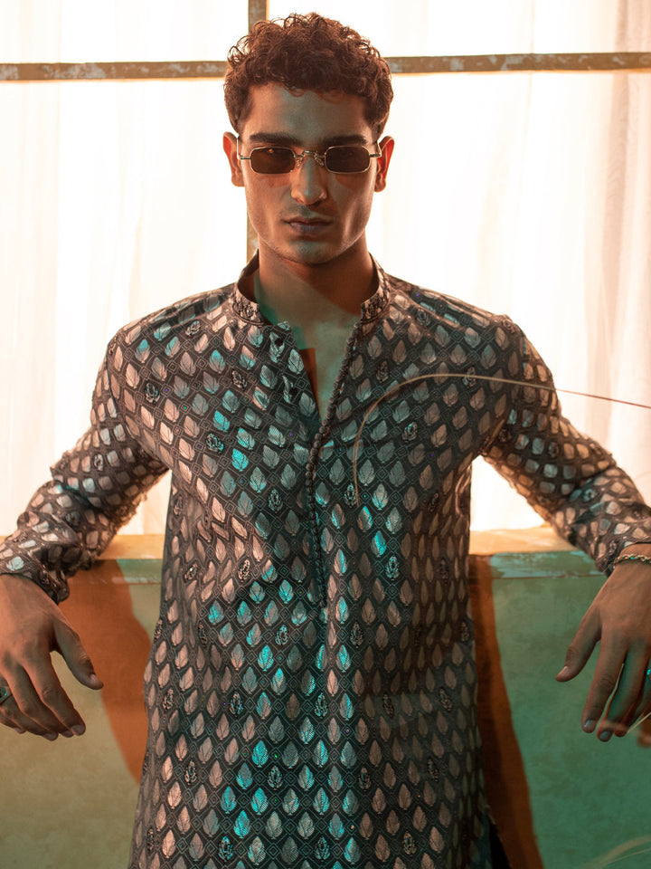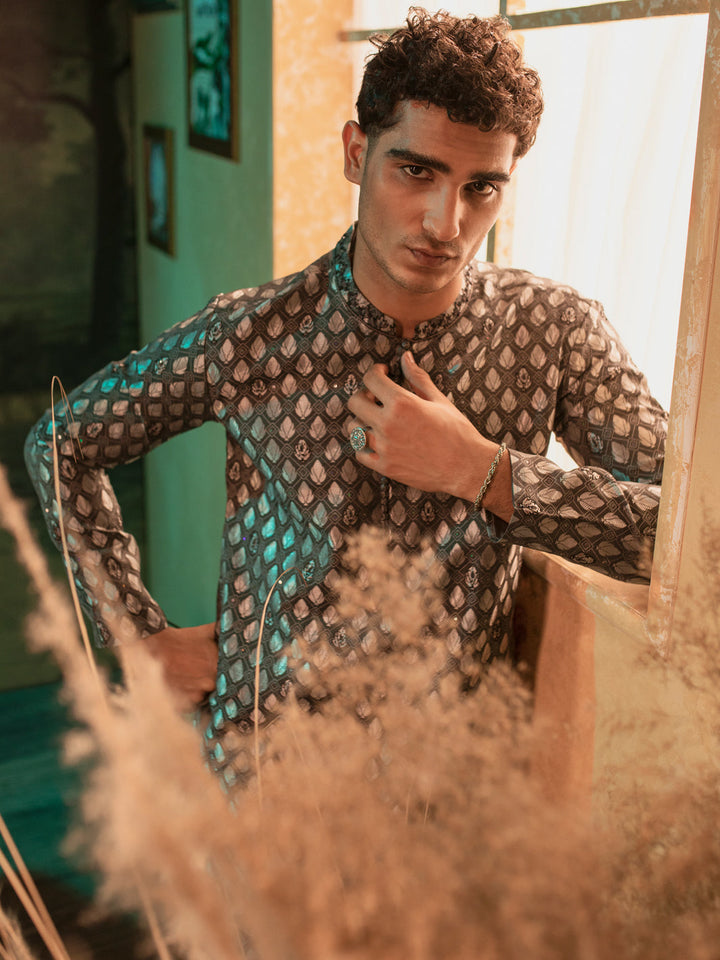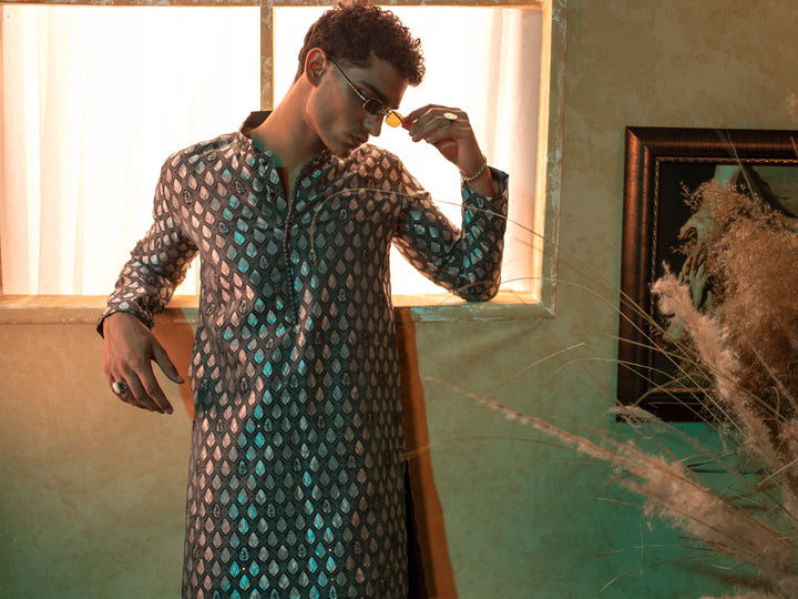Imported Fabric With Loop Buttons And Embroidered Collar And Front And Sleeves