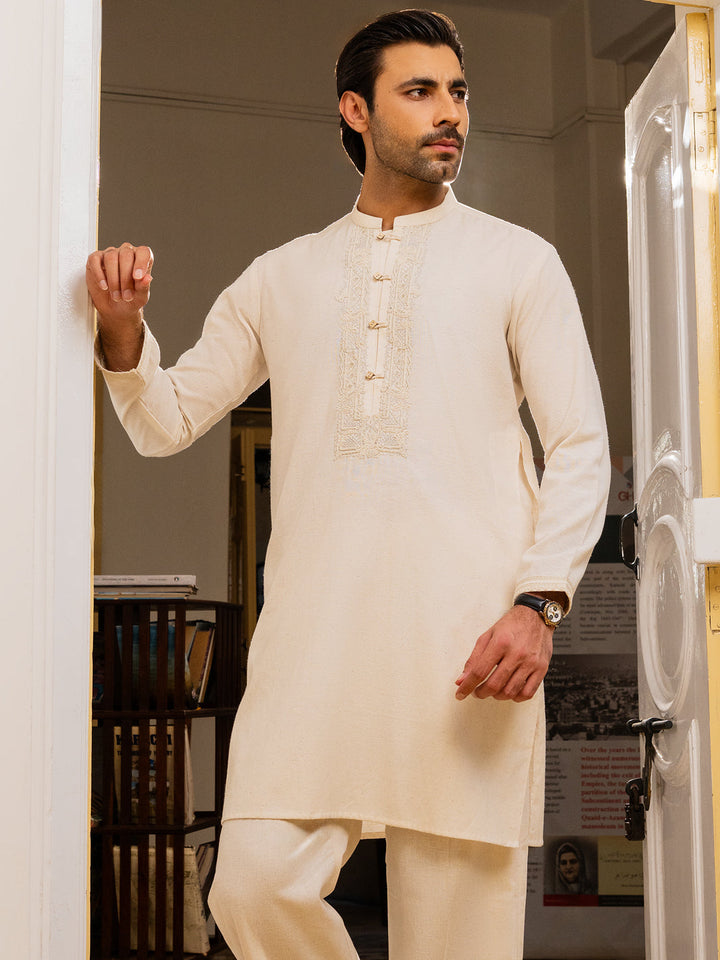 Formal kurta designed with sophisticated embroidery details around the placket and sleeves