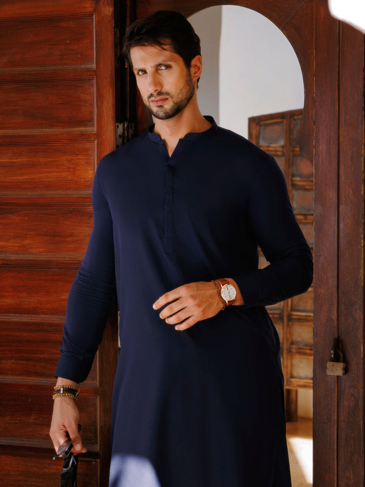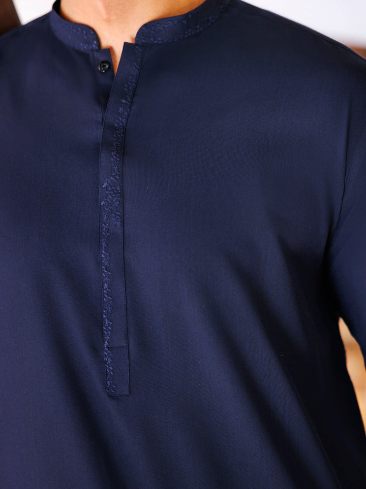 Navy Blue Blended Kameez Shalwar - AL-KS-3177