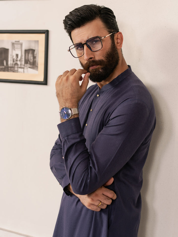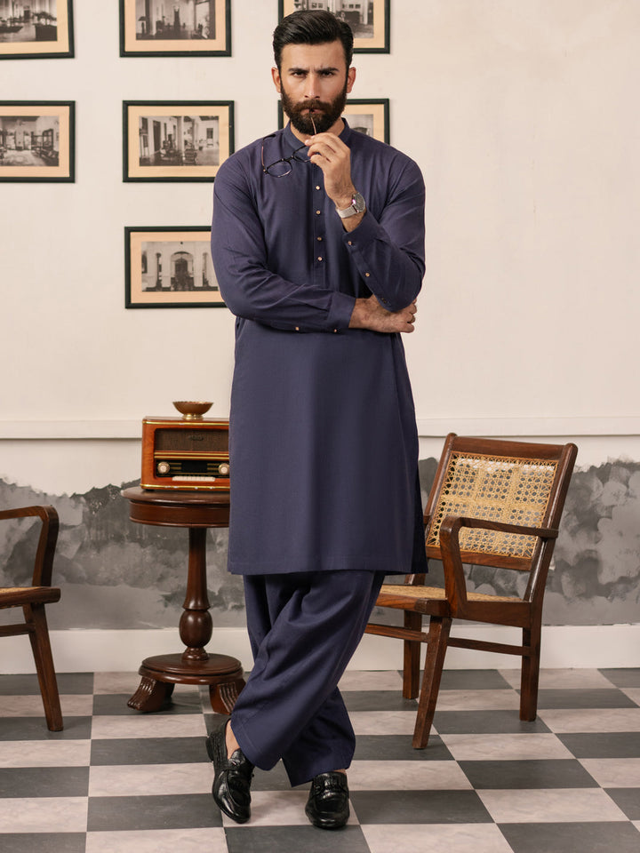 Dark Purple Blended Kameez Shalwar - AL-KS-3183