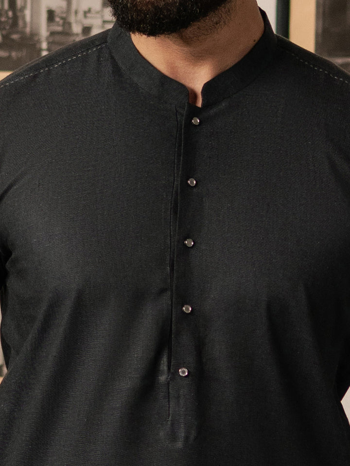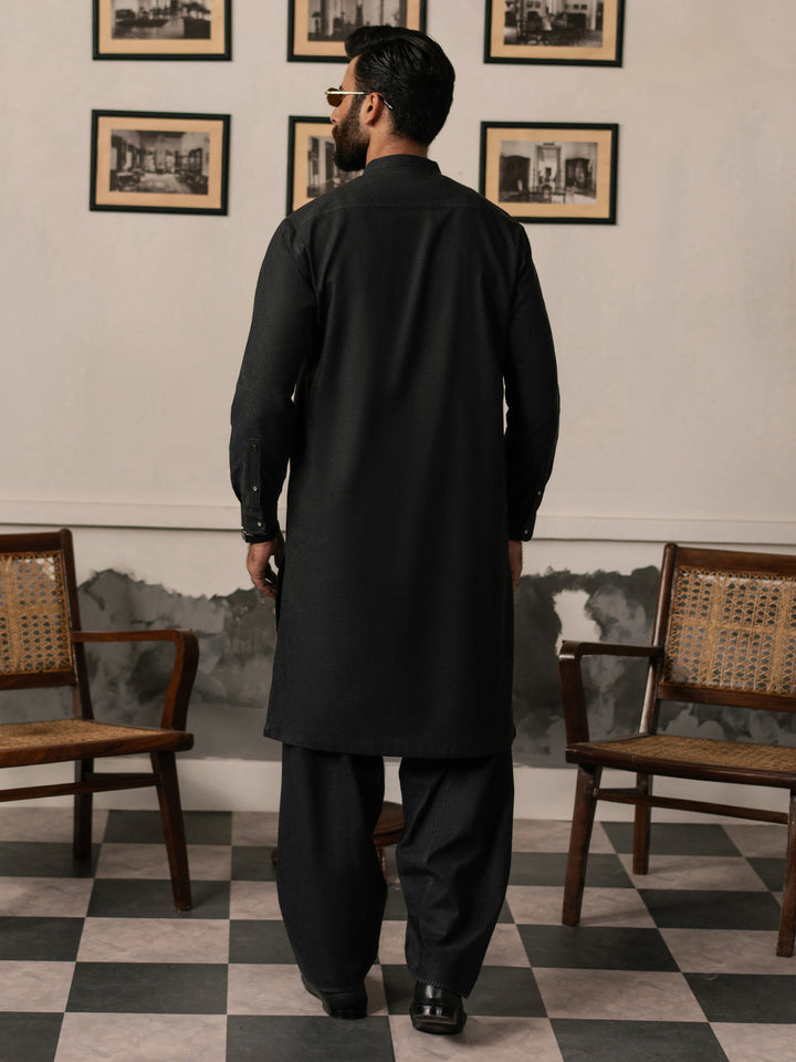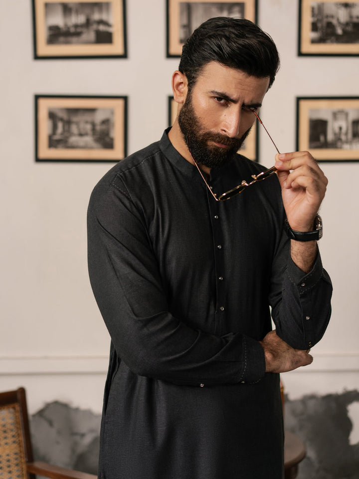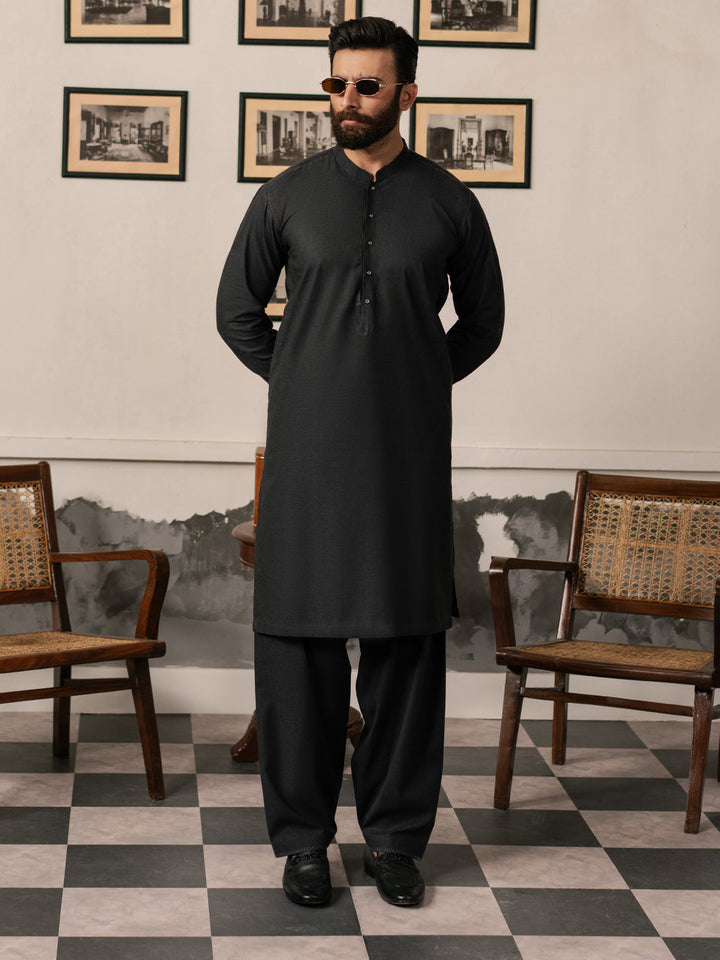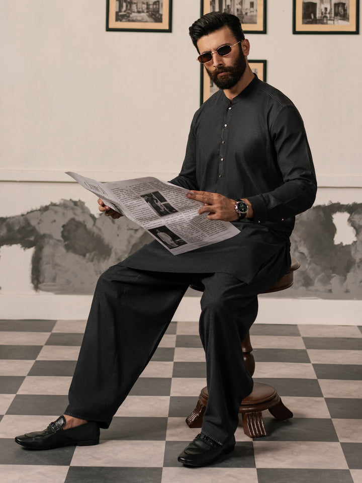 Charcoal Grey Blended Kameez Shalwar - AL-KS-3185
