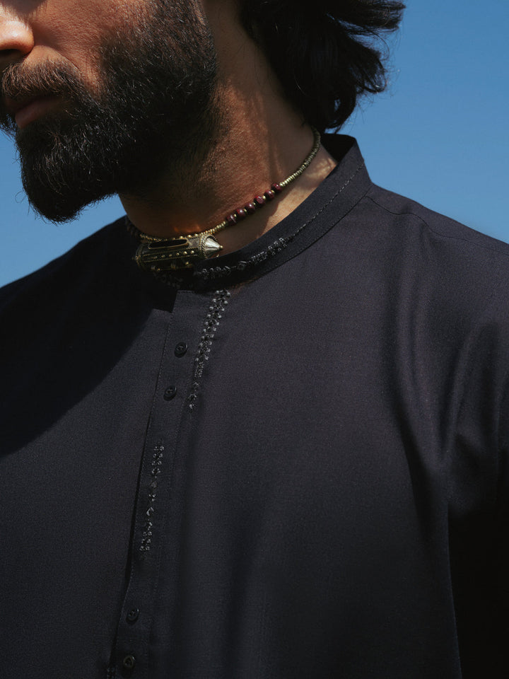 Black Blended Kameez Shalwar - AL-KS-3217B
