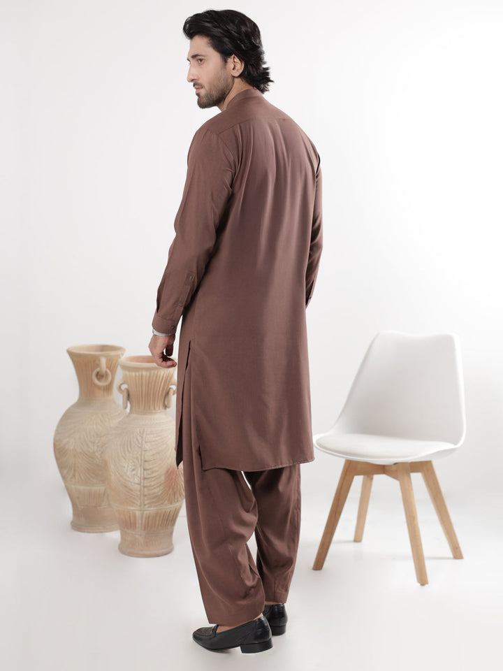 Brown Blended Kameez Shalwar - AL-KS-3234