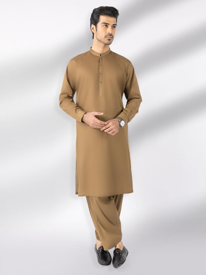 Olive Cotton Kameez Shalwar - AL-KS-3242D