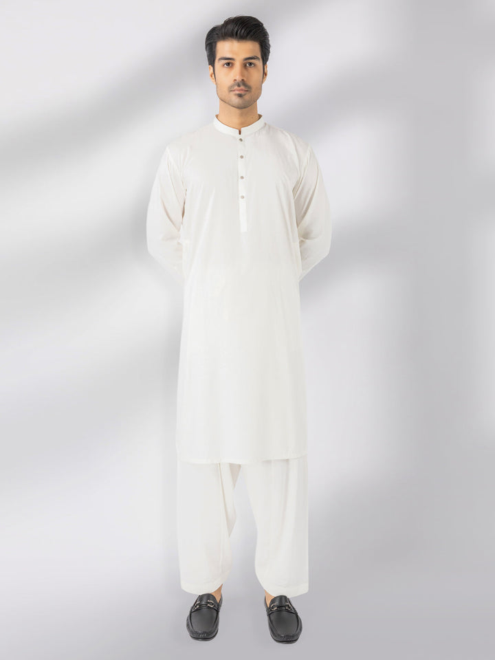 Off White Blended Kameez Shalwar - AL-KS-3247D
