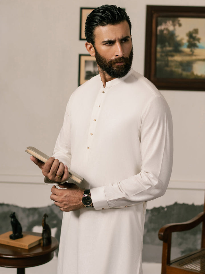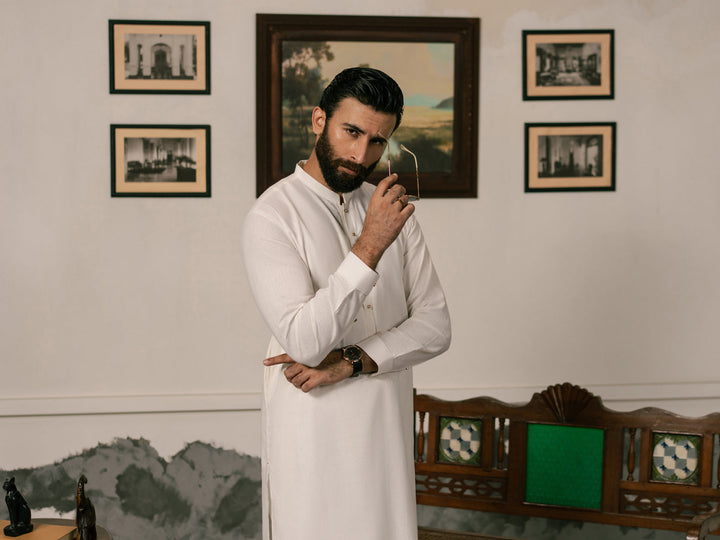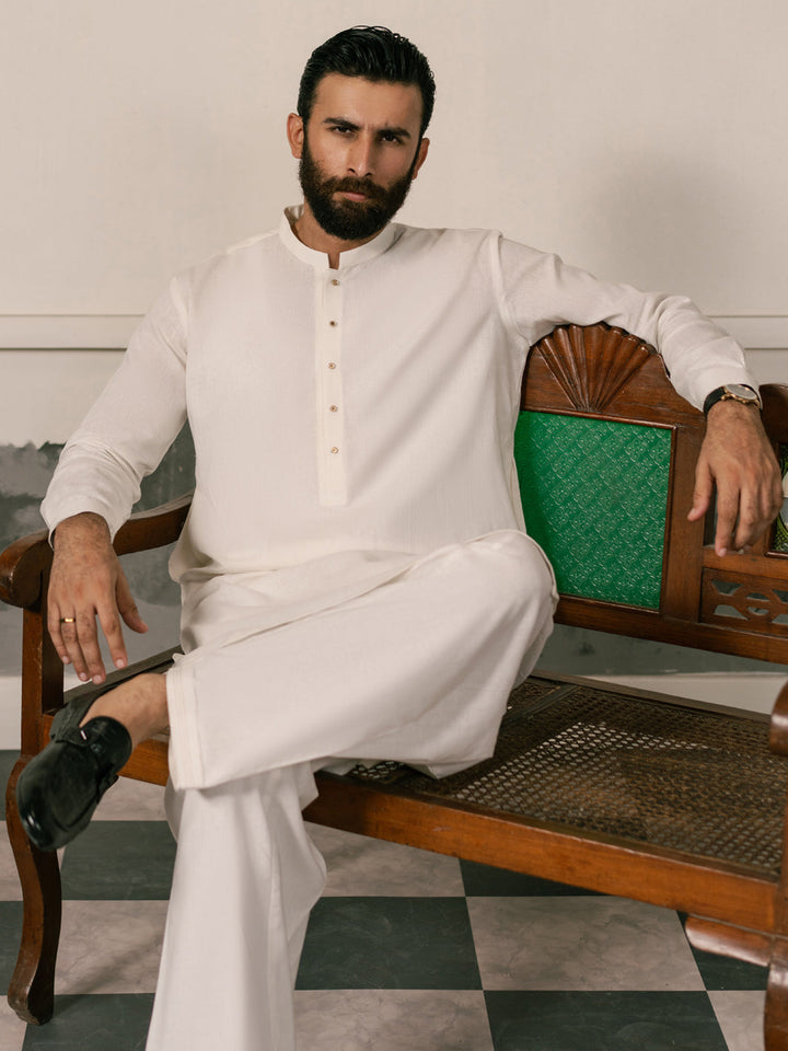 Kameez Shalwar Exclusively Tailored With Blind Stitching, Finely Detailed With Subtle Statement Stitches