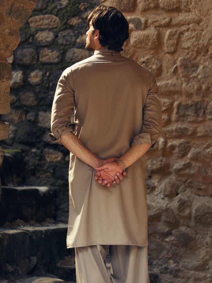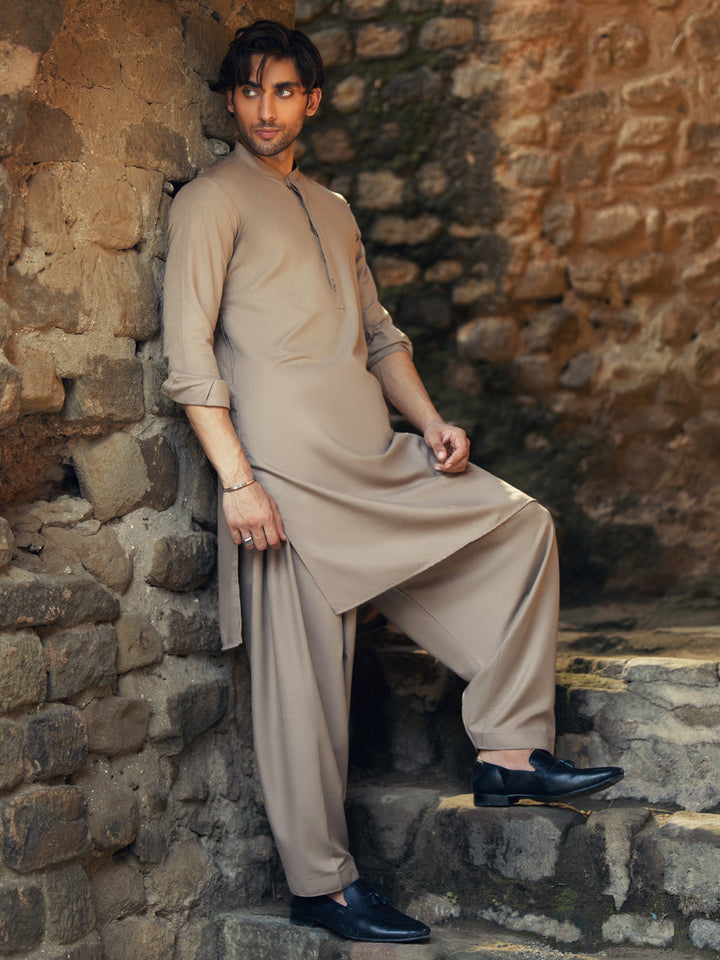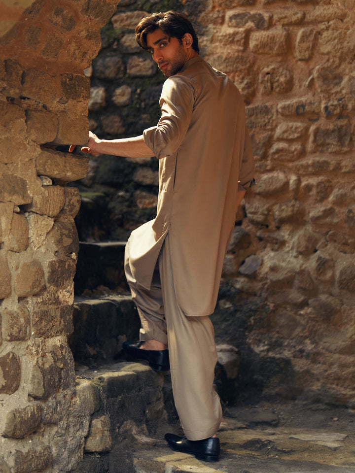 A Classic Cut-And-Sew Kameez Shalwar Crafted With Refined Tailoring and Modern Detailing.