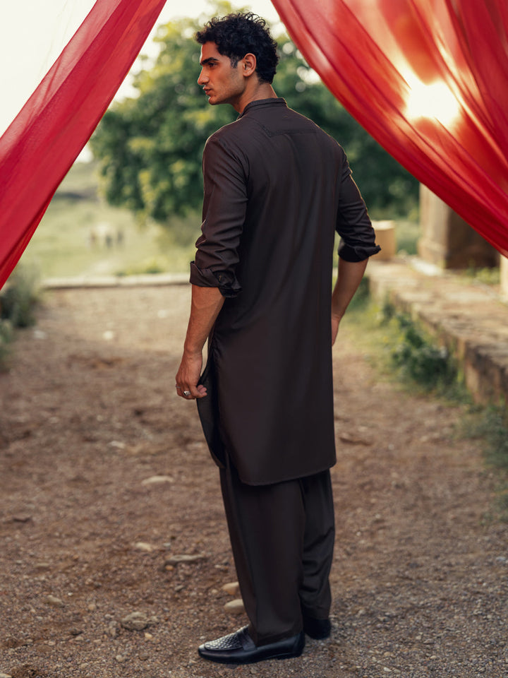 Dark Brown Kameez Shalwar - AL-KS-3275