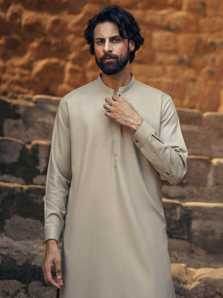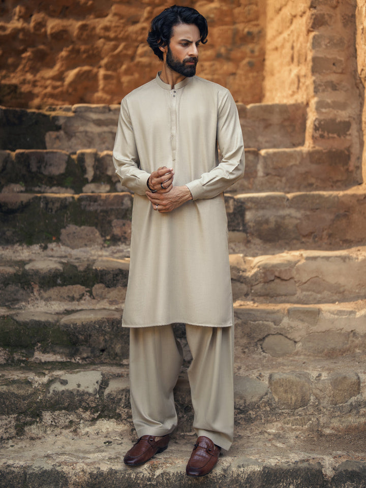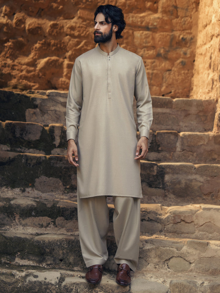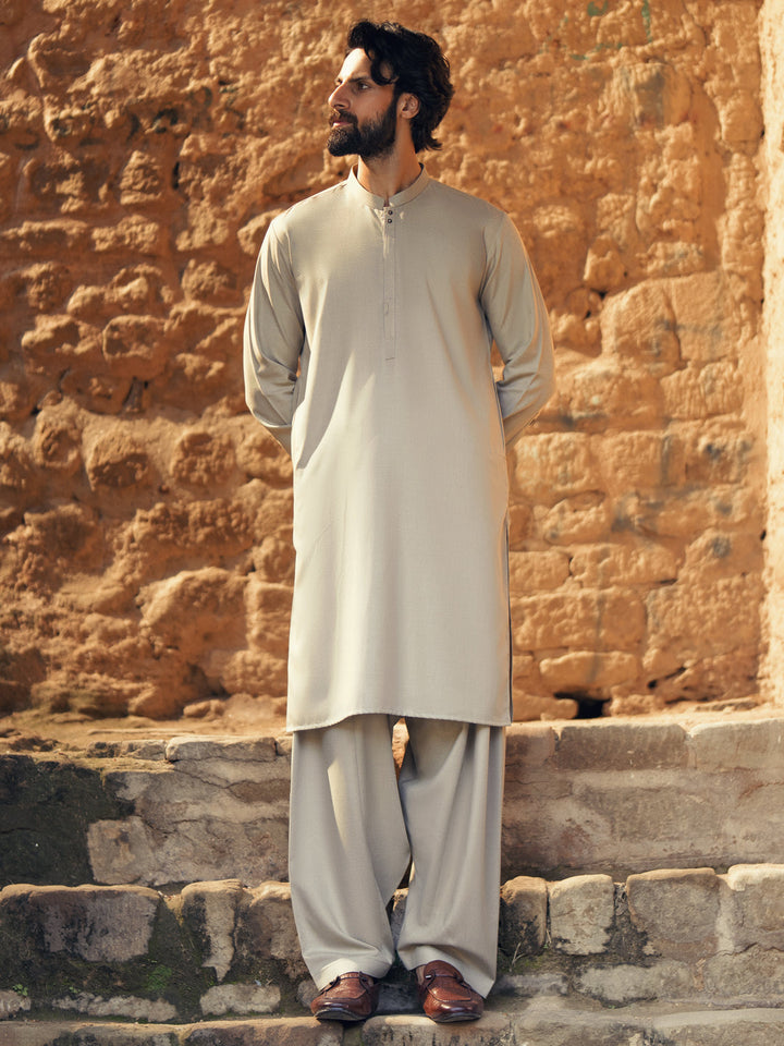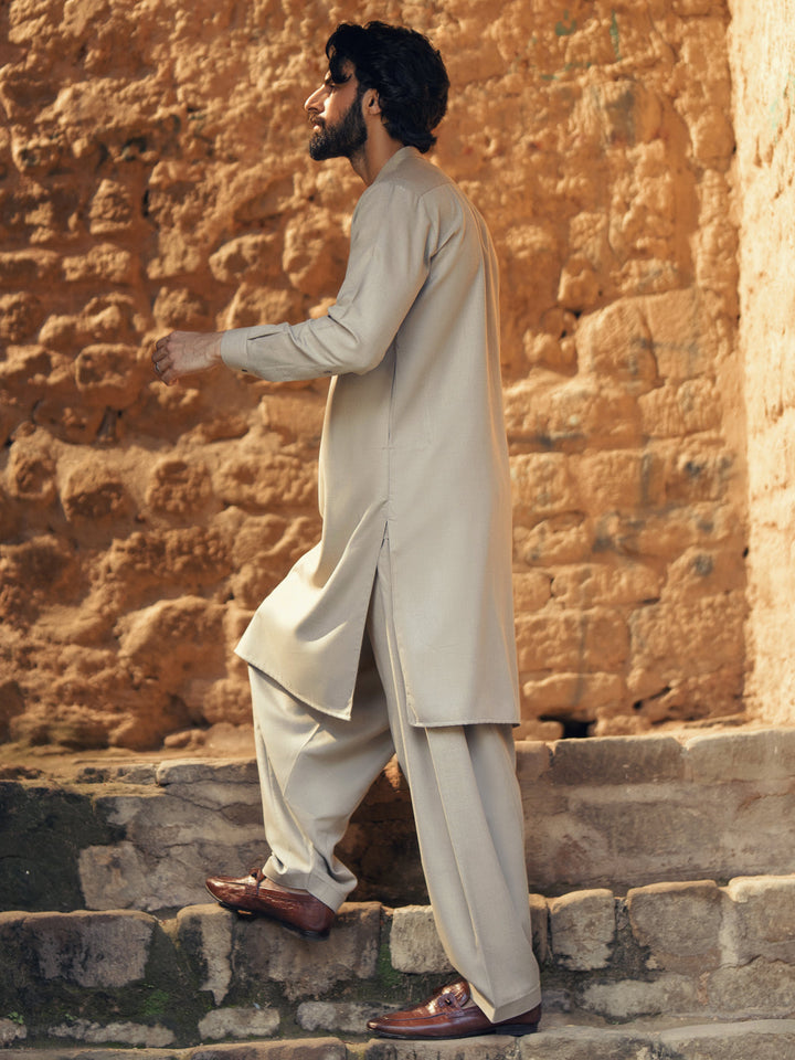 Classic Cut-And-Sew Shalwar Kameez Designed With Loop Accents on the Placket.