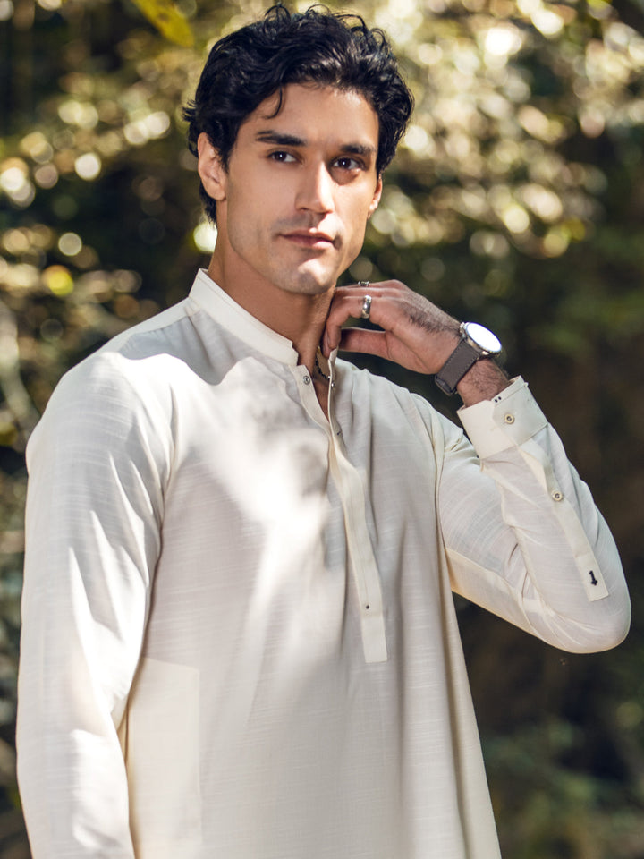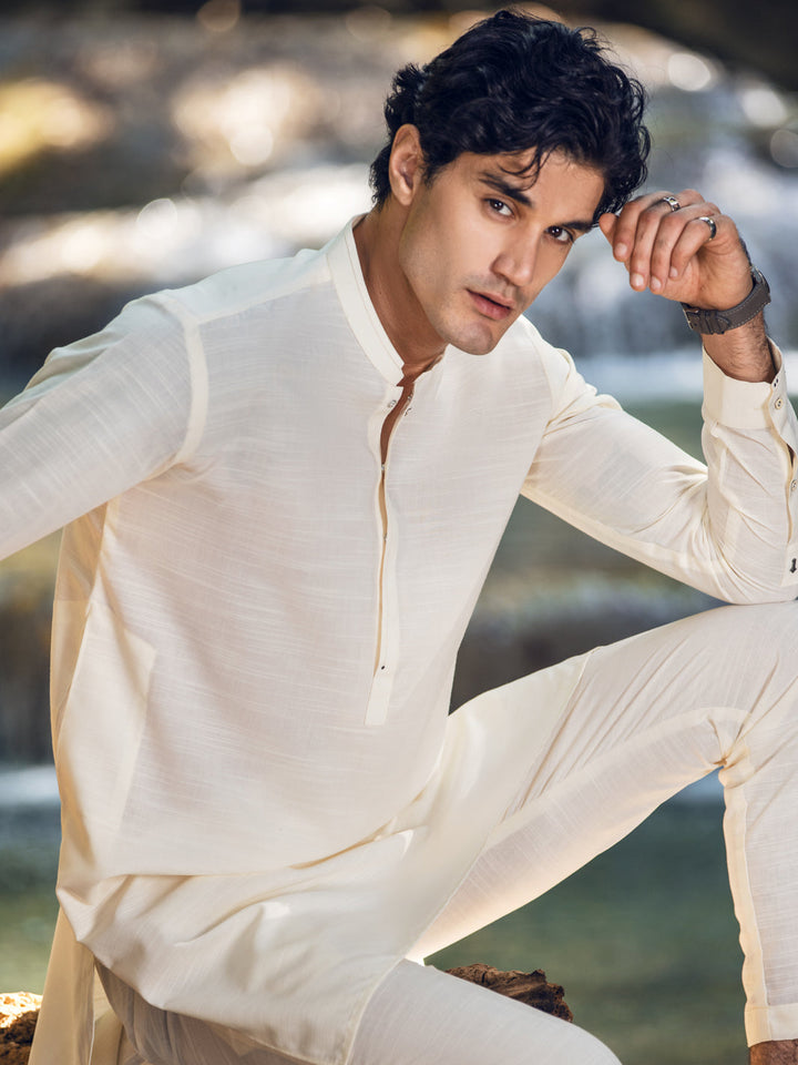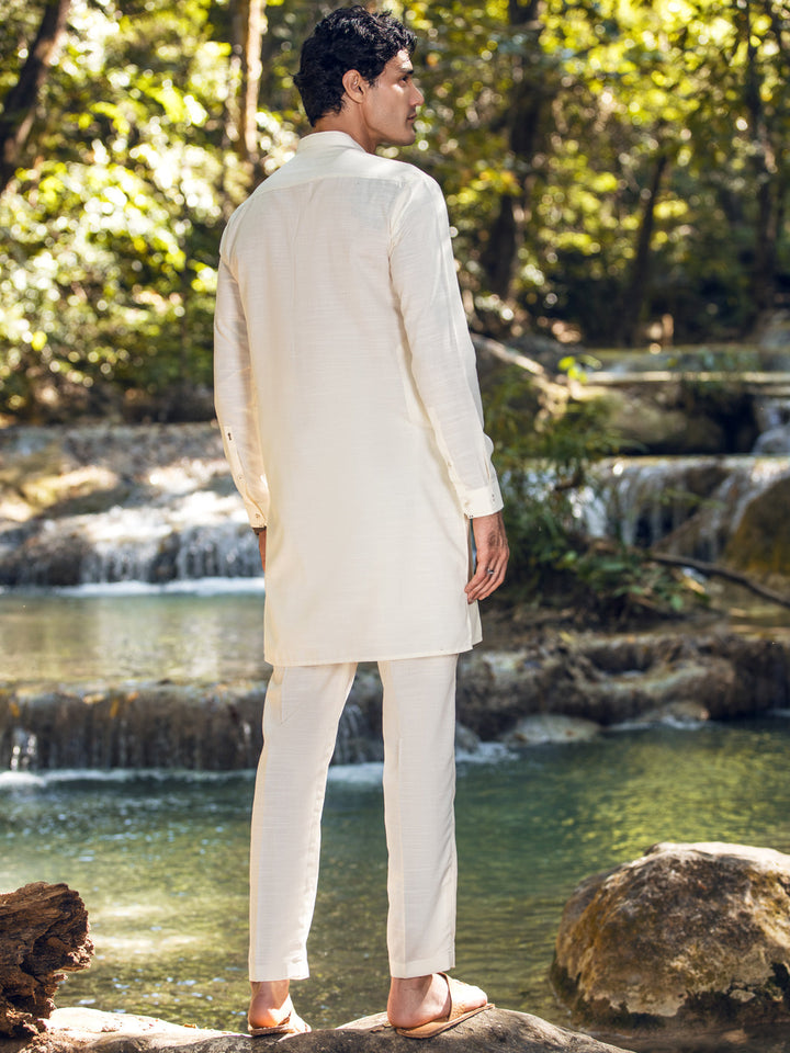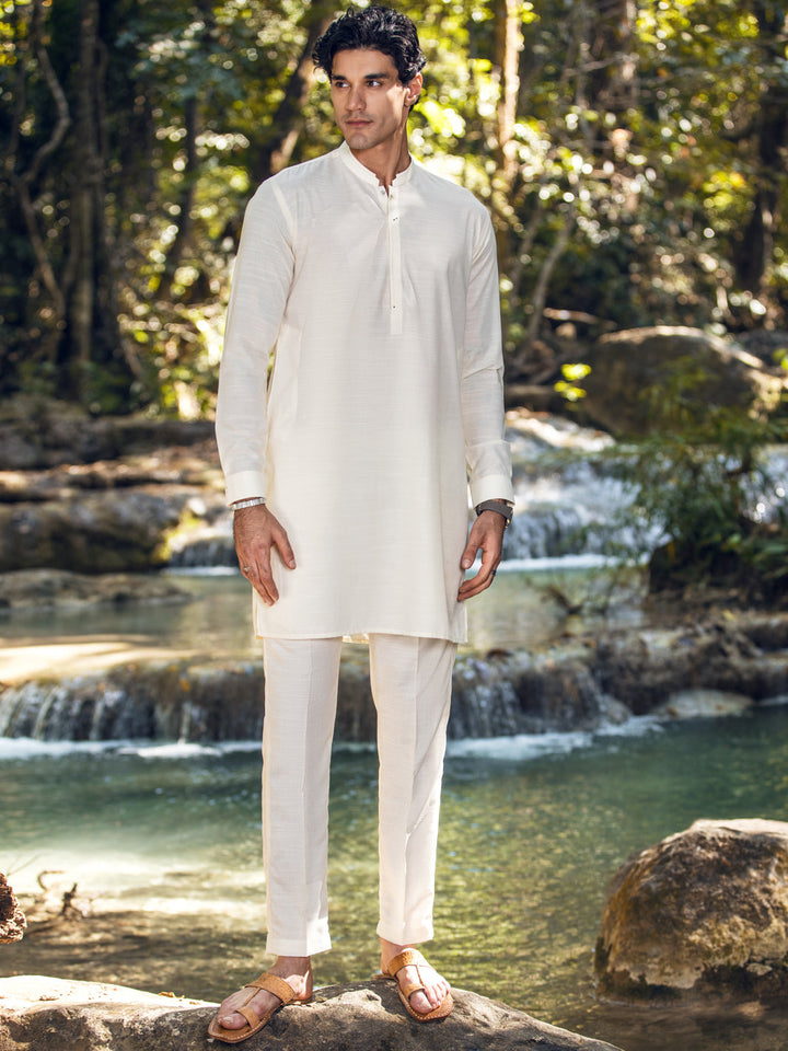 Cut And Sew Kurta Trouser With Basic Design Details And Styled Invisible Placket And Collar