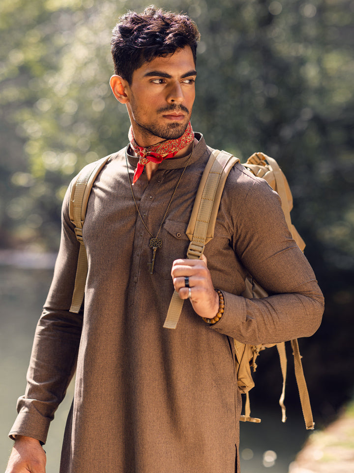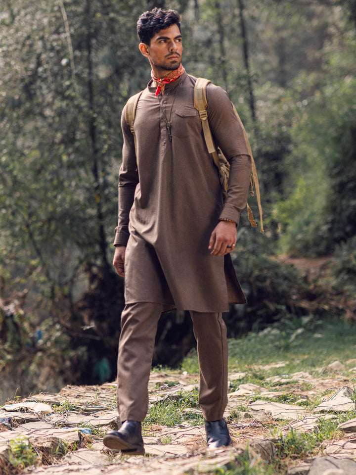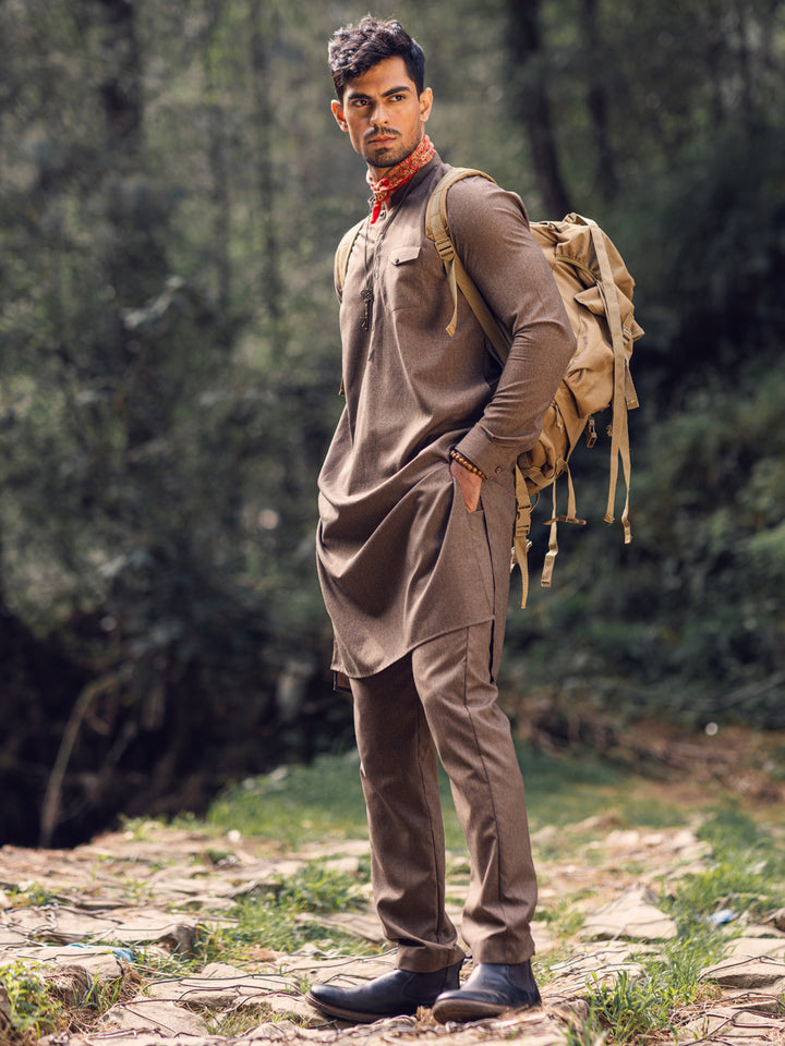 Cut & Sew Kurta Trouser With Rivet Details On Placket And Pocket Detail