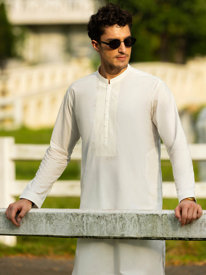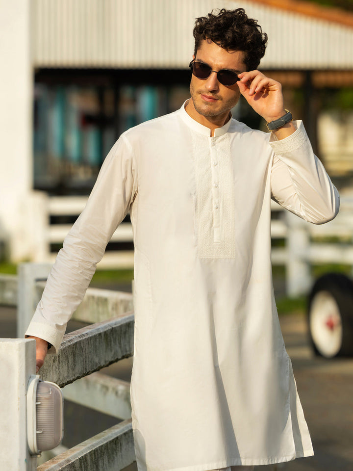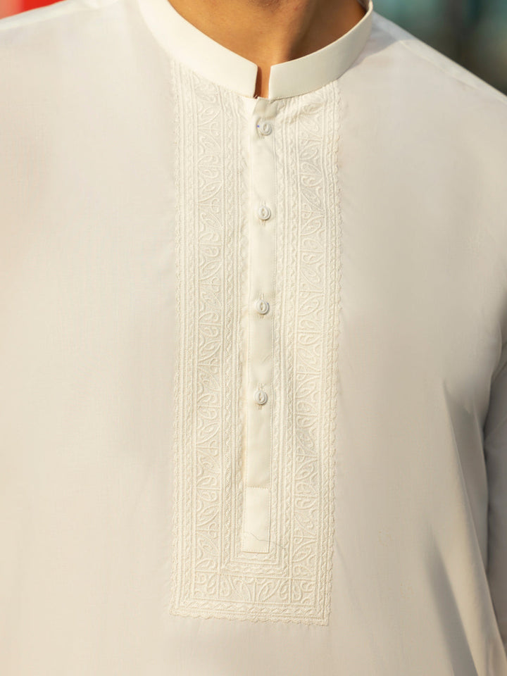 Semi Formal Kurta Trouser With Embroidery Details Around the Placket and Sleeves