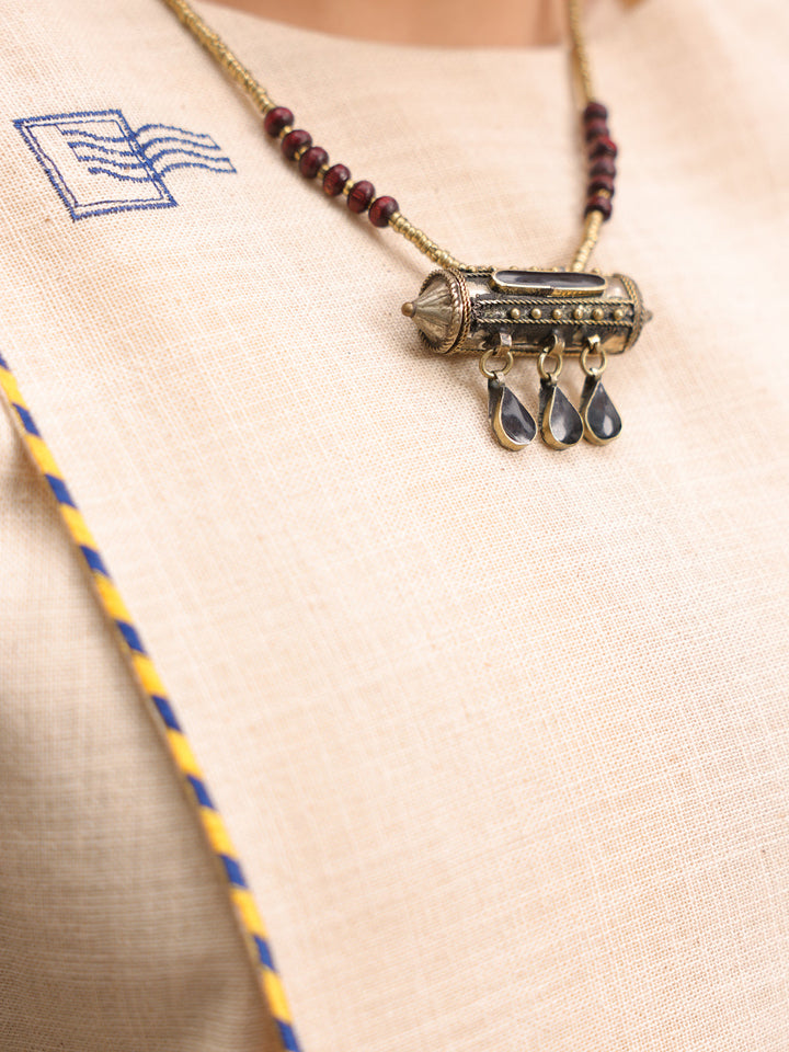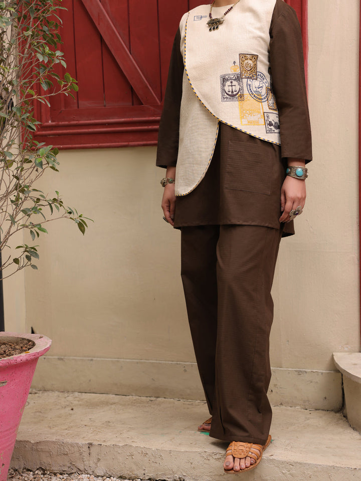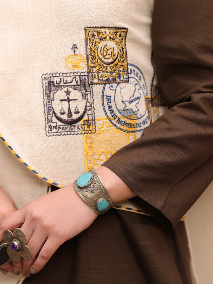 Cross Hatched Assymetrical Waistcoat With Embroidery Based On Post Stamps.