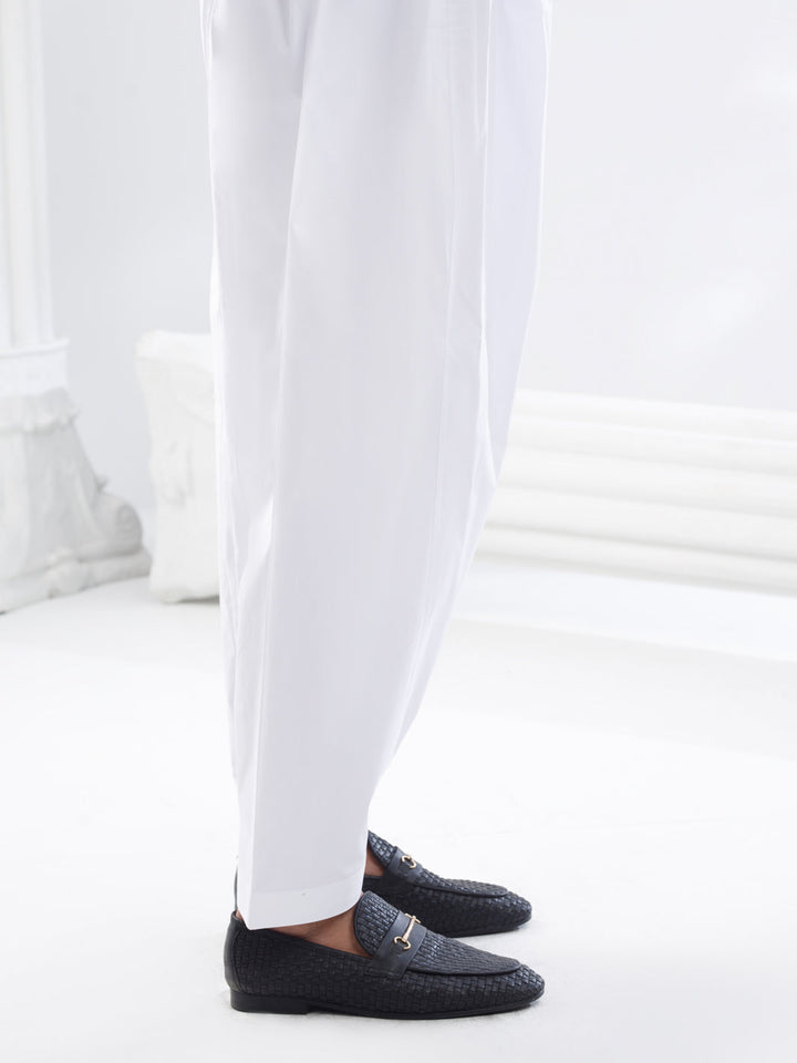 White Cotton Silk Shalwar - AL-MS-CS-1001-R1