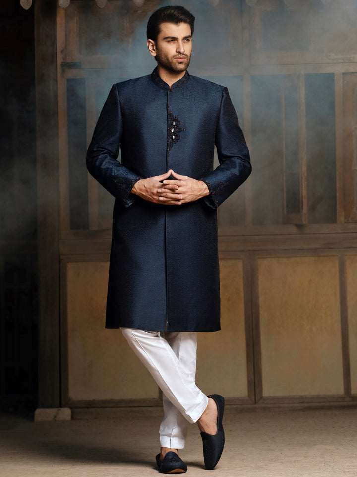 Embellished Sherwani With Embroidery On Jacquard Fabric