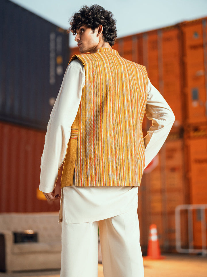 Mustard Waistcoat Featuring Asymmetric Cut & Sew With Bone Pockets