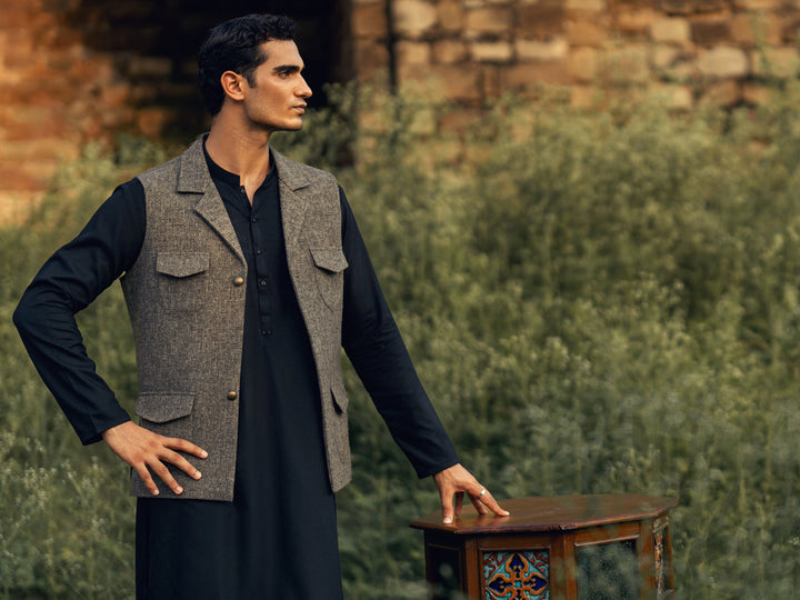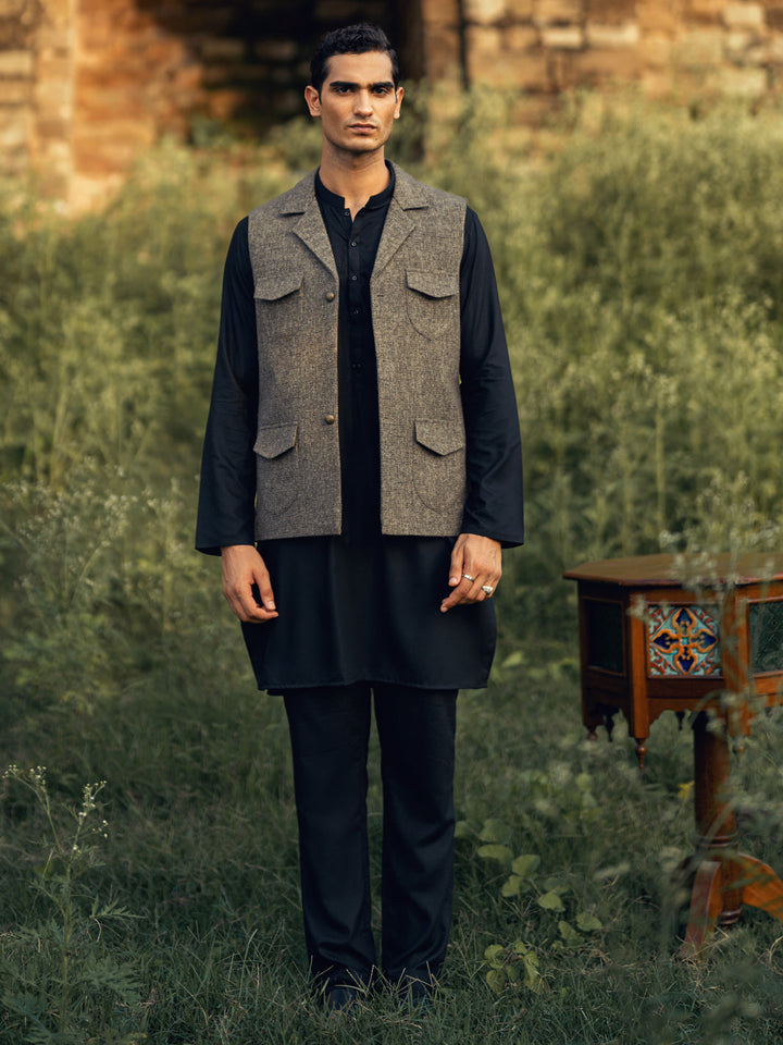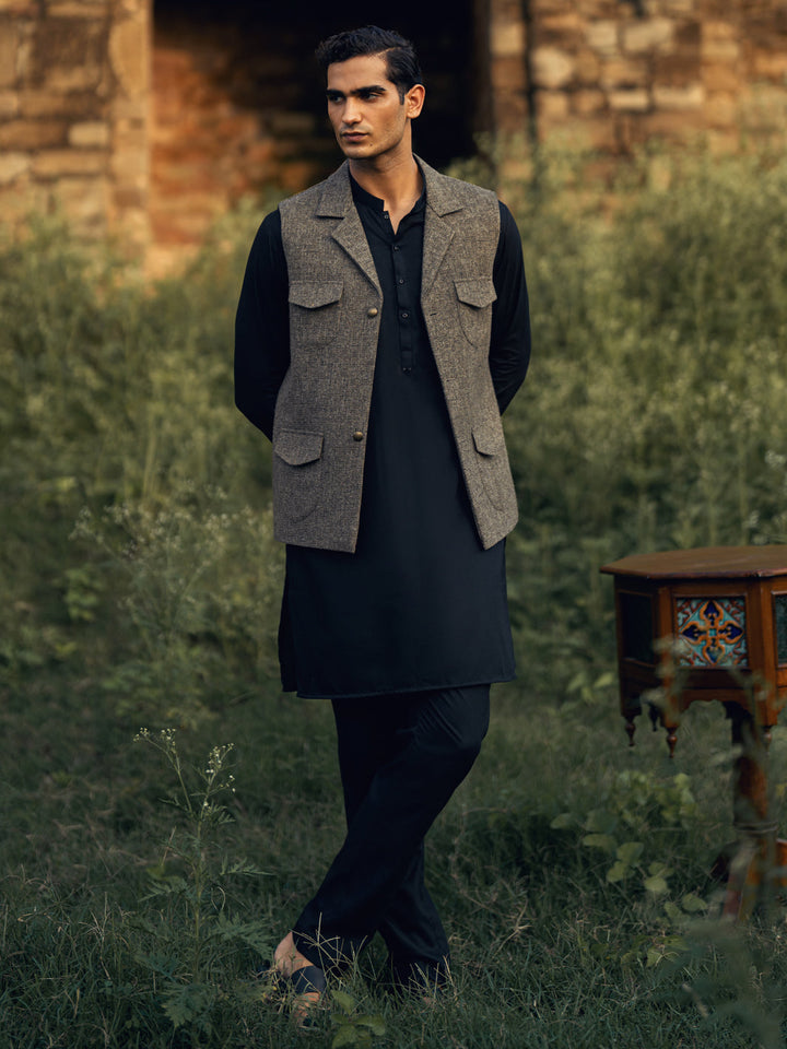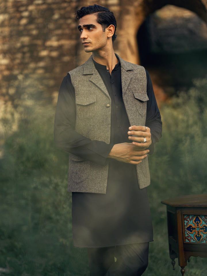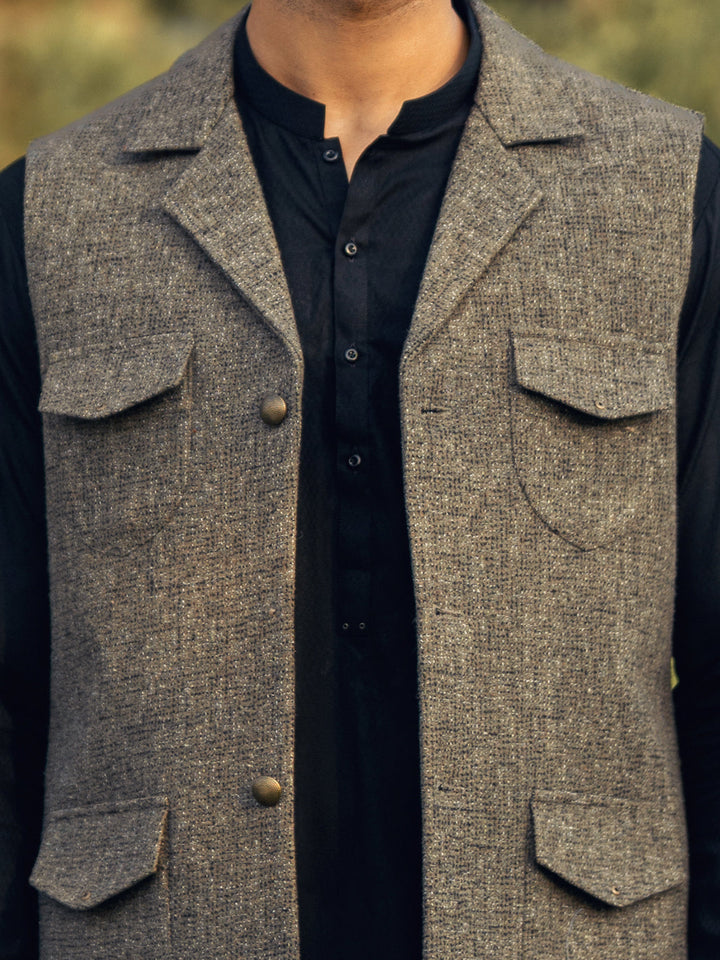 Olive Green Waistcoat Featuring Patch Pockets Detailed With Rivets