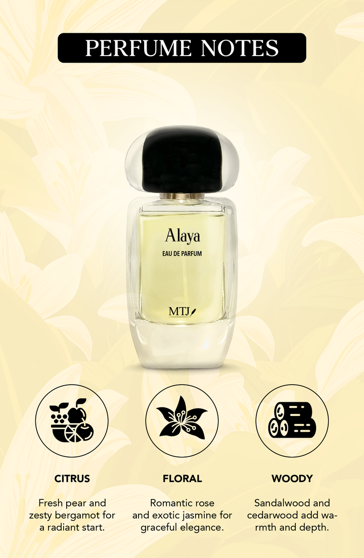 ALAYA is a radiant blend of fresh fruits, delicate florals, and grounding woods, embodying a serene yet confident femininity. This fragrance whispers timeless elegance, seamlessly blending freshness, romance, and warmth. ALAYA opens with a luminous burst of fruitiness, blossoms into a soft floral heart, and settles into a soothing woody base, making it a perfect companion for moments of grace and poise.