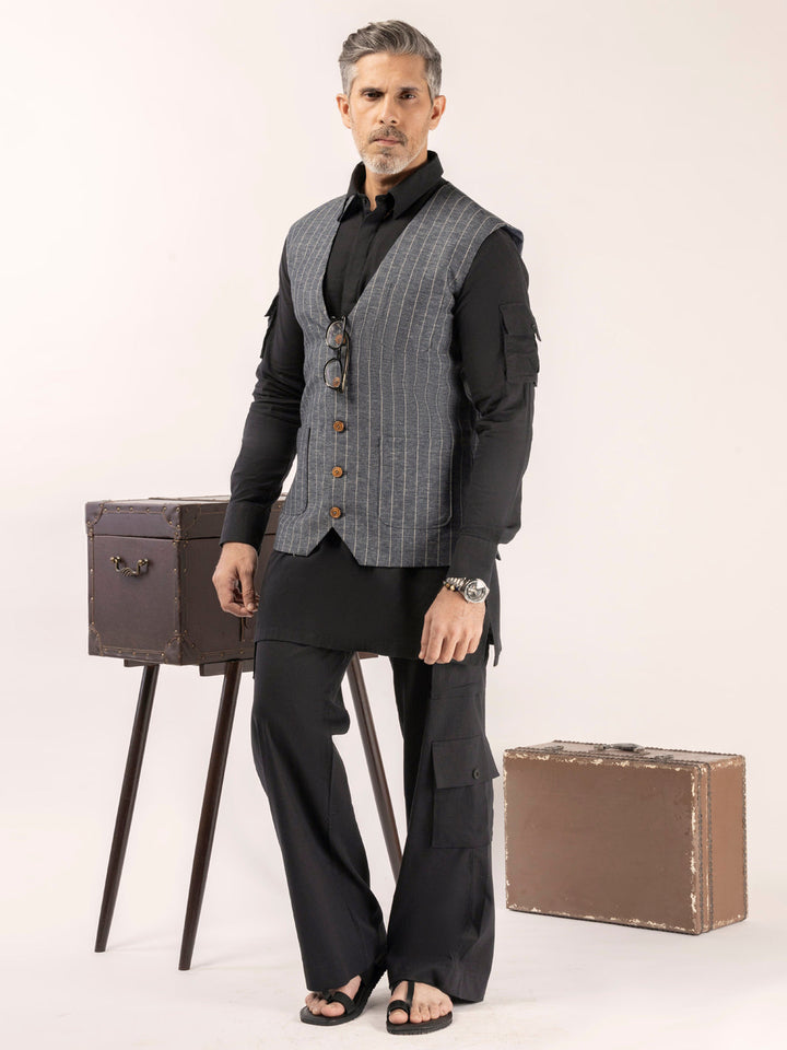 Cut & Sew Linen Waistcoat Detailed With Pockets