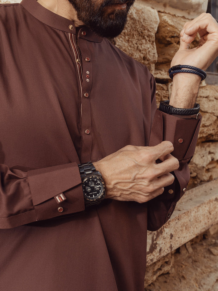 Kurta trouser with intricate cut & sew and embroidery accents on the cuffs, back yoke, inner and outer placket