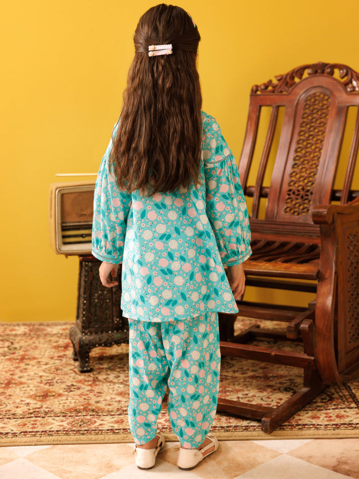 Digital Printed Cambric Gather Style Mid Length Shirt