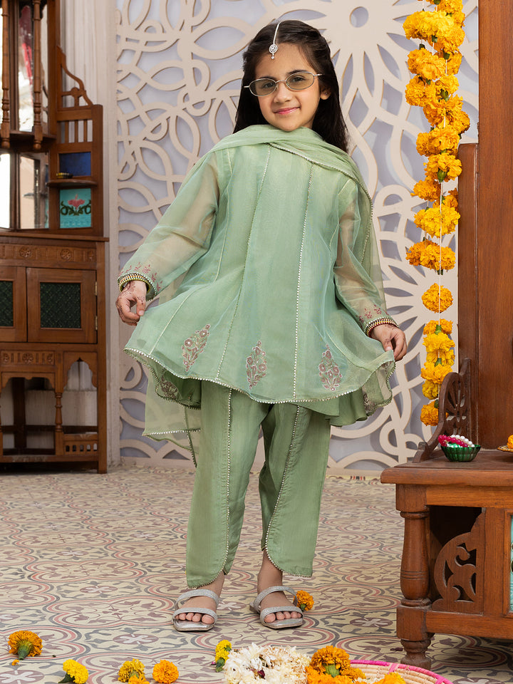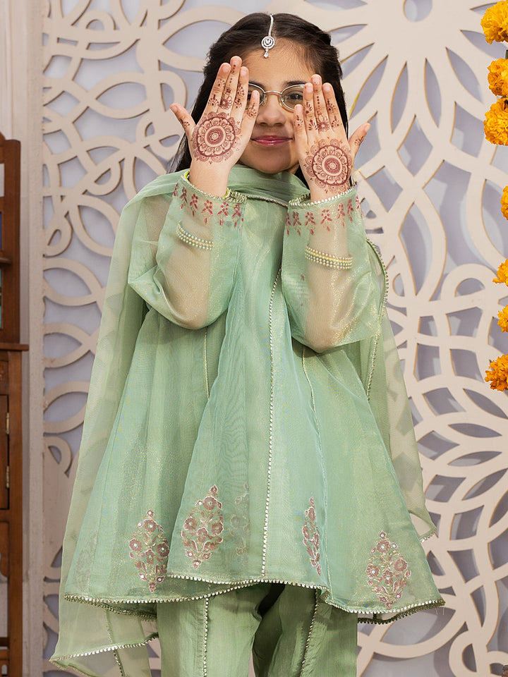 Light Green Shimmer Net 3Pc Stitched - ALGR-3PS-LS-010