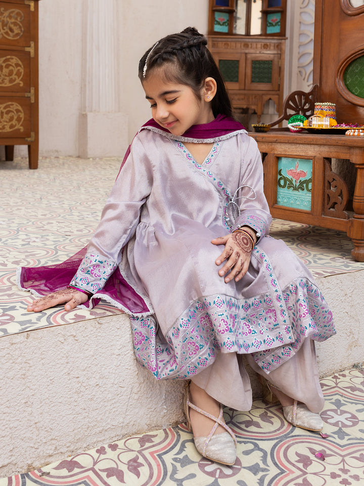 Grey Shimmer Net 3Pc Stitched - ALGR-3PS-LS-011