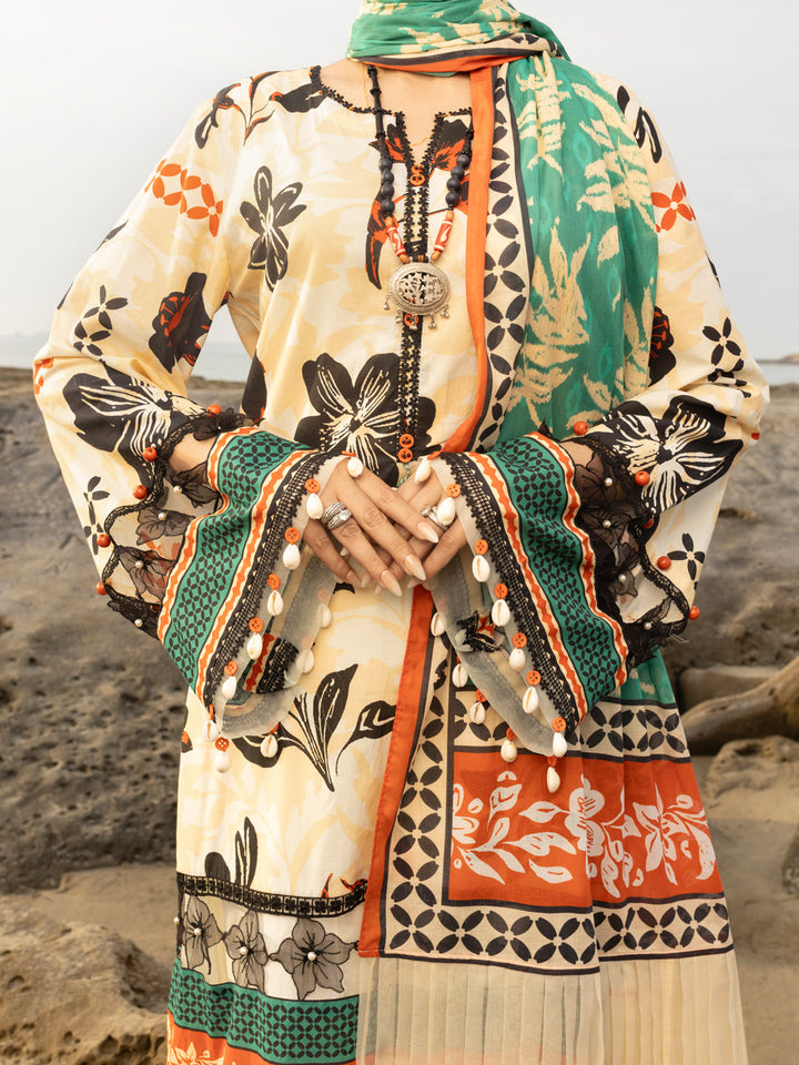 Beige Lawn 2Pc Unstitched - ALP-2PS-SLKD-UN-2254