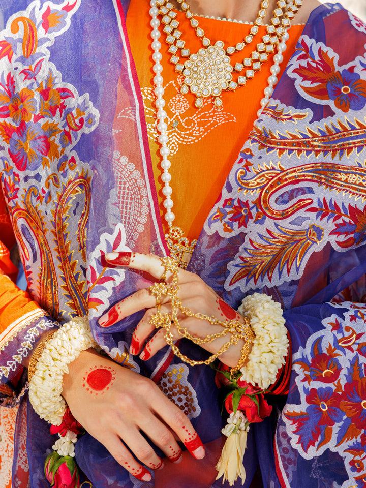 Orange Silk Foam 3Pc Unstitched - ALP-3PS-1623