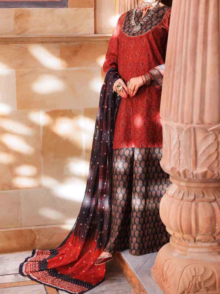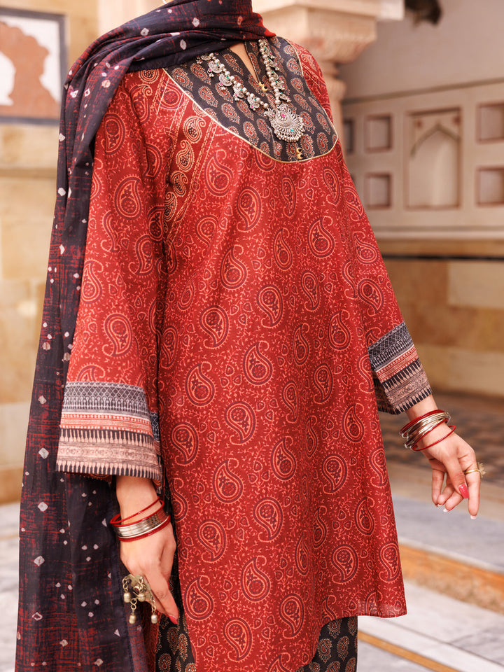 Maroon Lawn 3Pc Stitched - ALP-3PS-1898